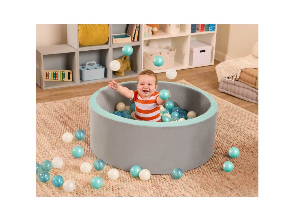 Připravte se na nekonečnou zábavu s pěnovým bazénkem WonderFill od B. Toys! Tento měkký a bezpečný bazének se po rozložení sám roztáhne do tvaru a je ihned připraven na hru. Součástí balení je 100 odolných plastových míčků, se kterými si děti mohou užívat „plavání“, hrabání, házení nebo se v nich jednoduše schovat. Díky měkkému pěnovému provedení poskytuje bazének pohodlné a chráněné místo na hraní, které podporuje pohyb i rozvoj hrubé motoriky.