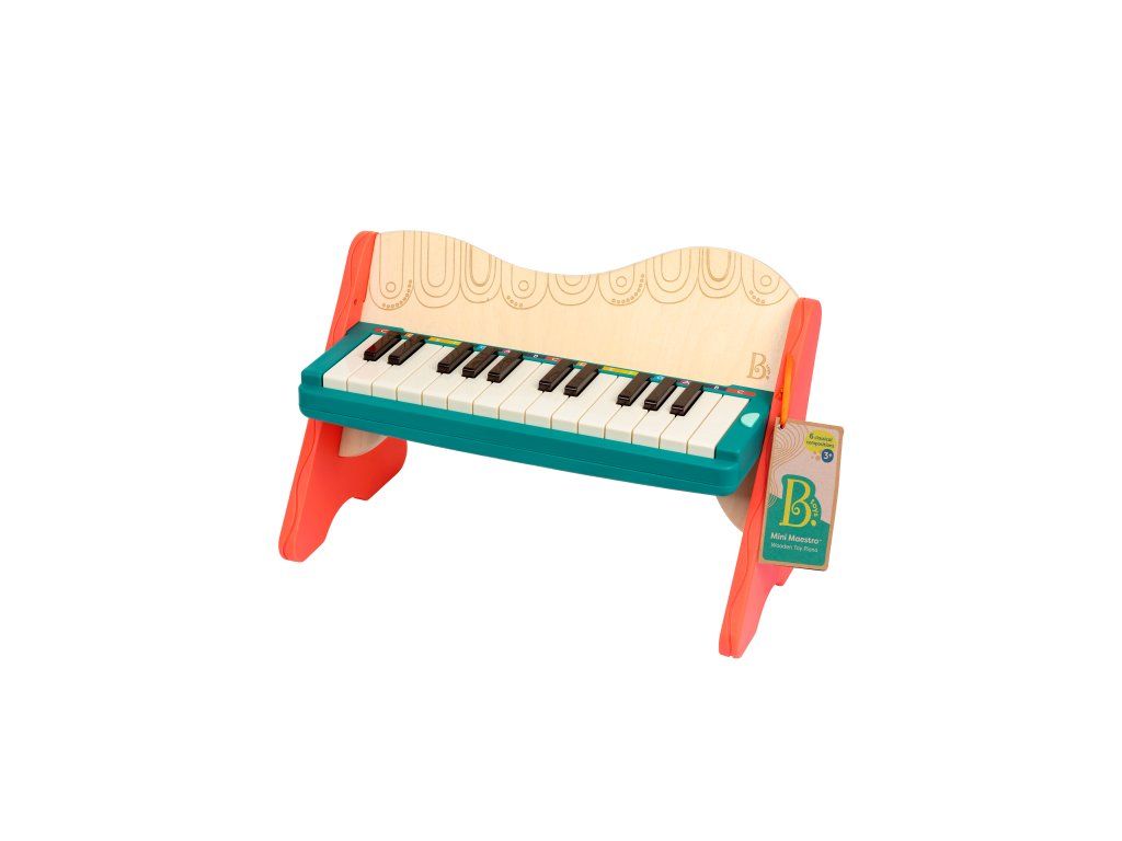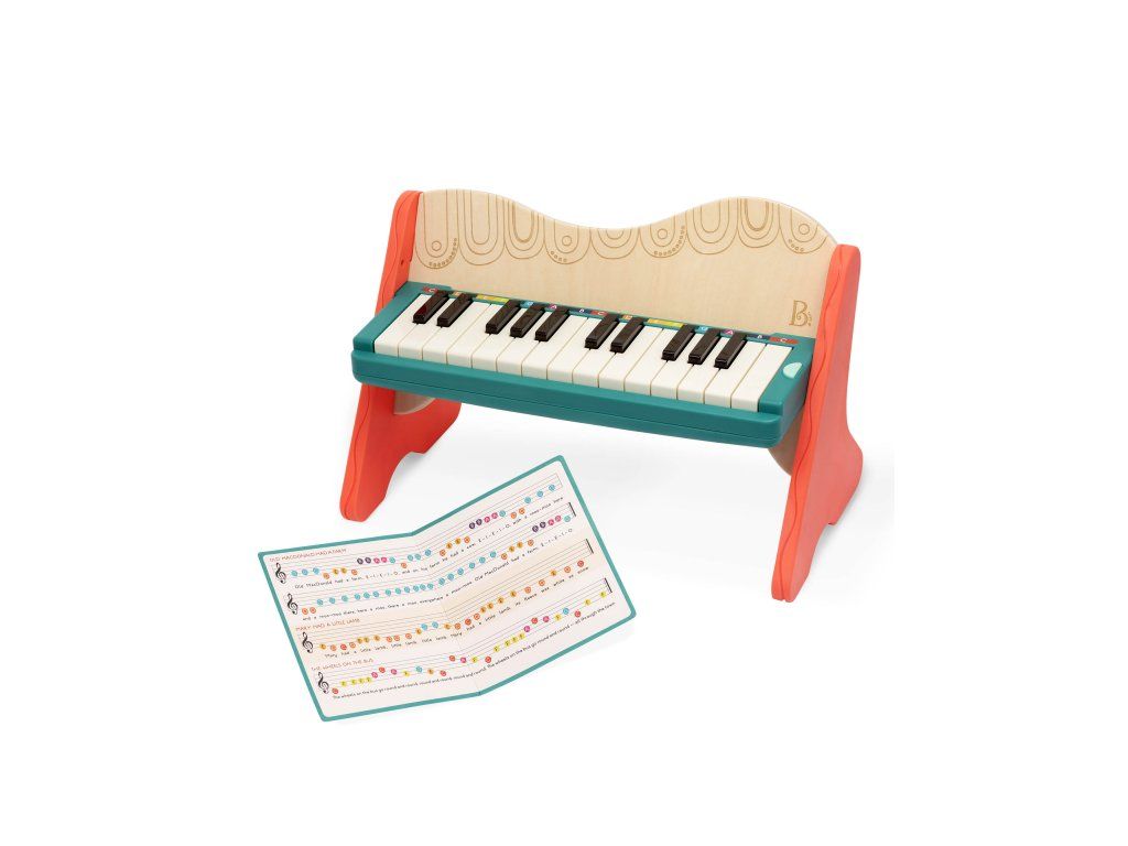 Funkční dětské piano s 25 klávesami a 2 oktávami v krásném dřevěném provedení. Klávesy jsou označeny barevně a písmeny pro snadné přehrávání melodií z přiloženého zpěvníčku s notami známých dětských písniček. Piano nabízí také 6 přednahraných klasických melodií.