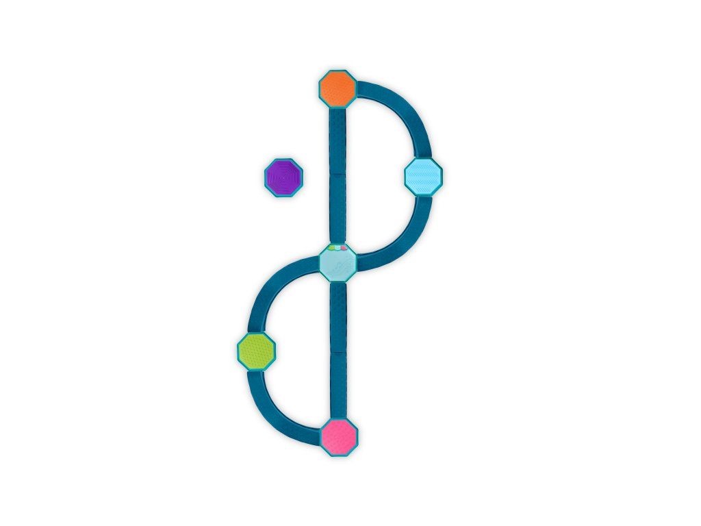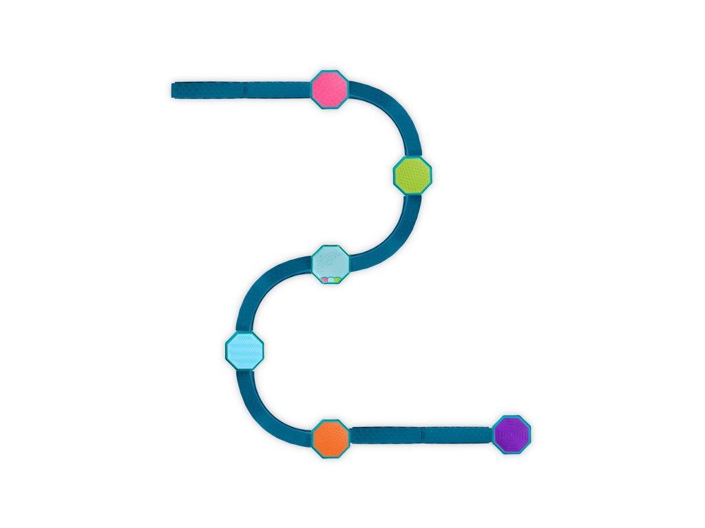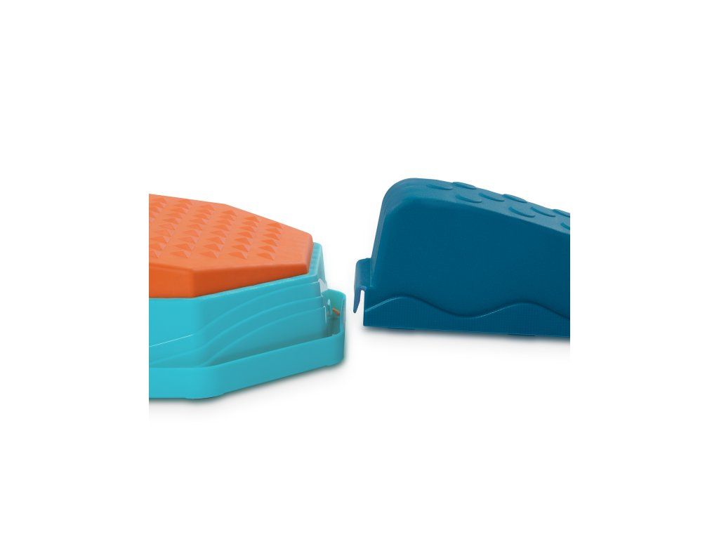 - Modulární balanční dráha – 4 vlnité překážky, 4 rovné překážky a 5 senzorických stupínků umožňují nekonečné kombinace a variabilní stavby