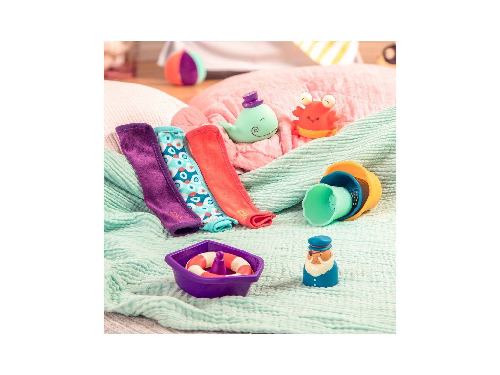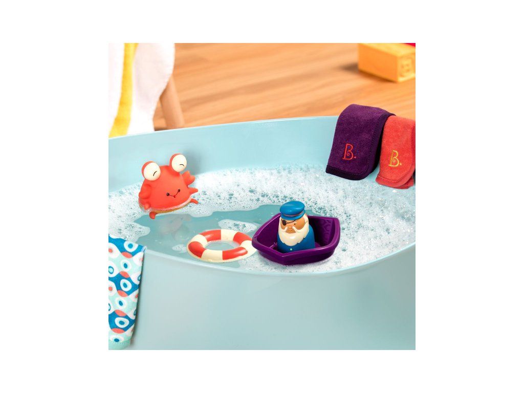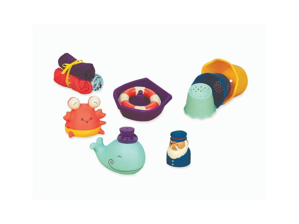 Velká sada hraček do koupele promění každé koupání ve chvíle plné zábavy pro děti i rodiče. Všemu velí kapitán v člunu se záchranným kruhem!