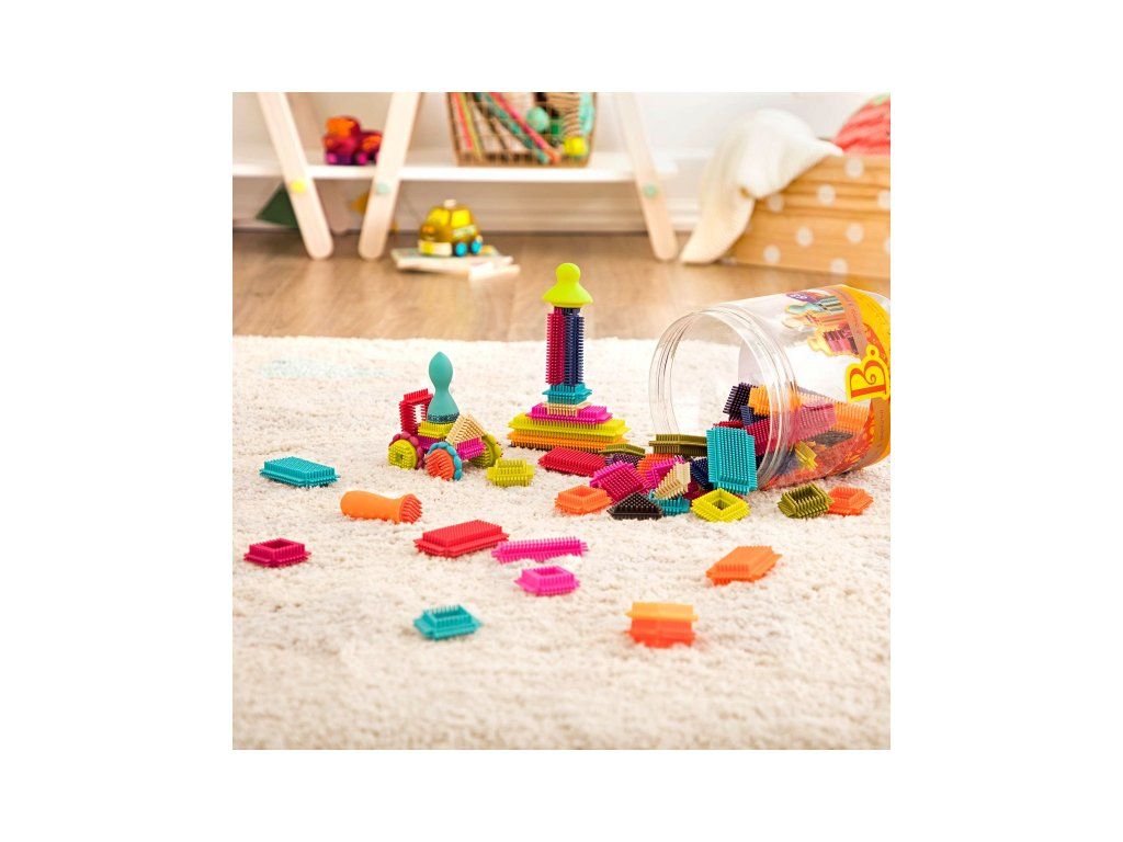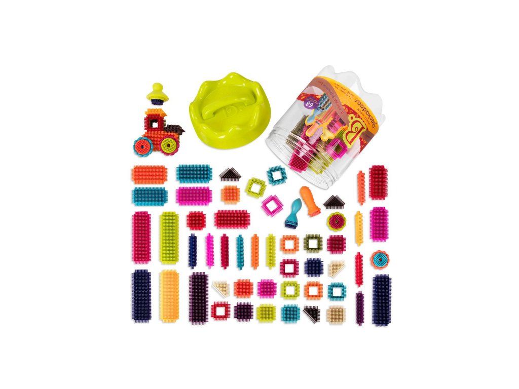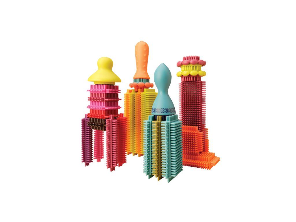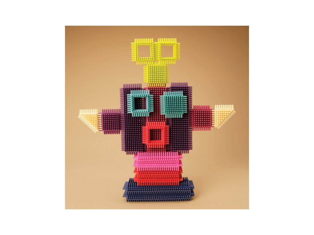 Unikátní „ježatá“ stavebnice s různobarevnými díly umožňuje různorodé stavění od robota, auta až po celé město. 68 kusů z příjemného měkkého materiálu nabízí nekonečně mnoho kombinací. Jednotlivé díly se snadno spojují.