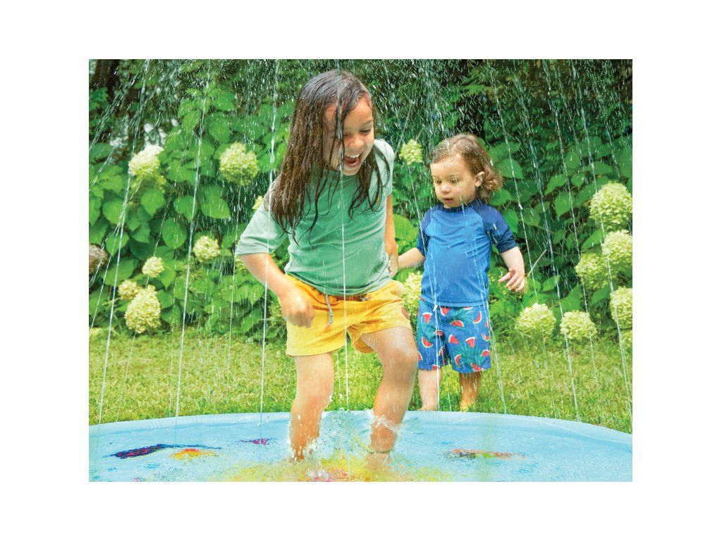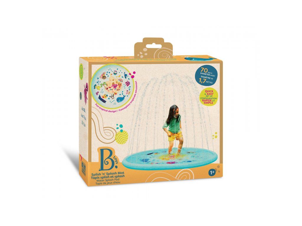 Zábava může začít – léto je tady! Tropická stříkací podložka Splish 'n' Splash od B. Toys je perfektní pro malé i větší děti. Ti nejmenší si užijí bezpečné surfování v mělké vodě, zatímco větší děti budou nadšeně poskakovat a čekat pod osvěžujícími vodními sprškami. Vestavěné trysky vytvářejí vodní oblouk až 120 cm vysoký – a pokud svítí slunce, můžete zahlédnout i duhu! Podložka nejen chladí v horkých dnech, ale podporuje i pohyb, koordinaci a smyslový rozvoj.
