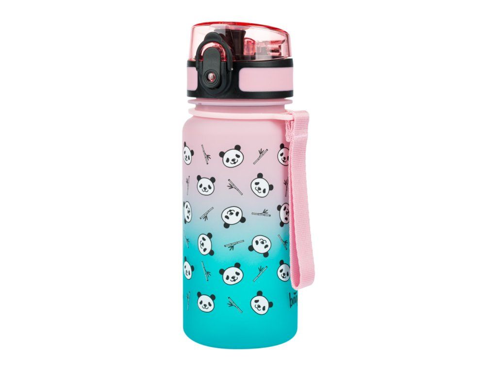 Tritanová láhev pro děti s motivem pandy a barevným přechodem 350 ml Ve školní výbavě nesmí chybět pořádná láhev na nápoje Láhev od BAAGLa je vhodná jak do školy, tak i na výlety nebo na sportovní kroužek. Uzamykatelné víčko nepropustí ani kapku nápoje a zajišťuje jednoduchou a intuitivní manipulaci. Součástí láhve je sítko, díky kterému můžete láhev použít i na limonády s ovocem nebo čaj (materiál je vhodný i na horké nápoje). K láhvi je připevněno poutko, které umožňuje pohodlné nošení v ruce.Certifikovaný tritánový materiál zaručuje maximální bezpečnost a kvalitu nápoje Nevydává nepříjemný plastový zápach, jako je tomu u jiných plastových materiálů, a zároveň neobsahuje žádné zdraví škodlivé látky (BPA, PVC, ftaláty, či jiné). Ostatně, výrobky z tritánu se používají i ve zdravotnictví. Používáním lahve snížíte plastový odpad z jednorázových PET lahví a pomůžete tak snížit objem vyprodukovaného plastového odpadu, který dosud končí převážně na skládkách, ve spalovnách, nebo často i v přírodě.Objem lahve je 350 ml.