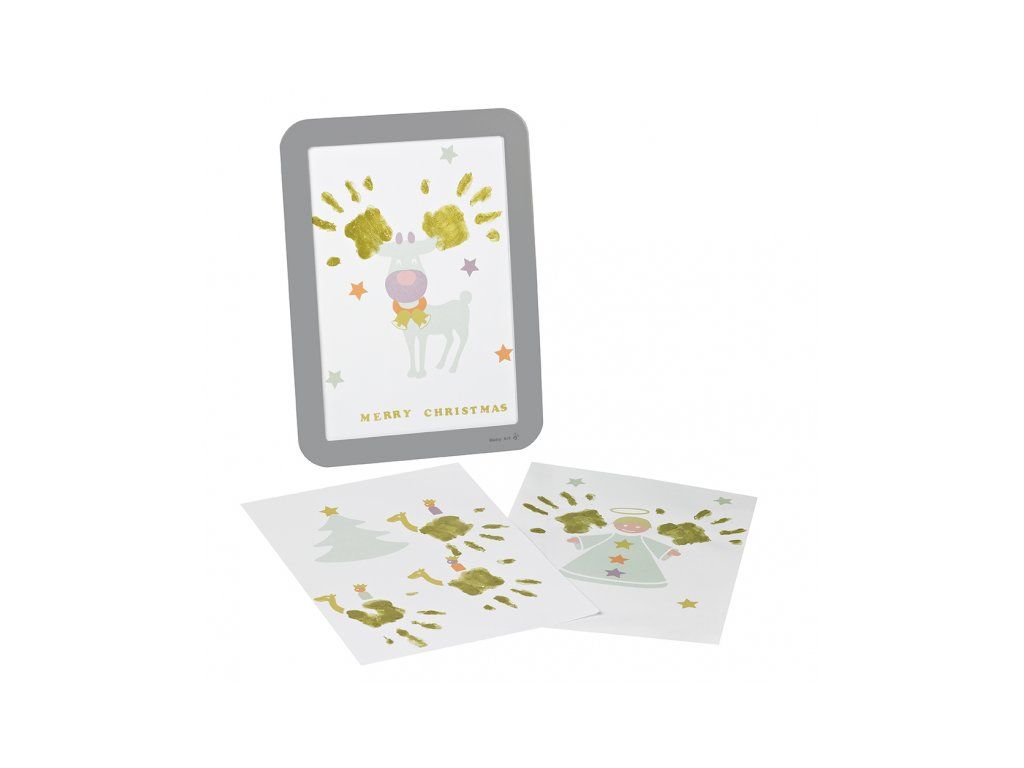 Balení obsahuje rámeček, obrázky k dotvoření s pomocí otisků ručiček dítěte, sadu samolepek s vánočními motivy a vše, co potřebujete k výrobě otisku. Použití podle přiloženého návodu je jednoduché, rychlé a bez nepořádku.
