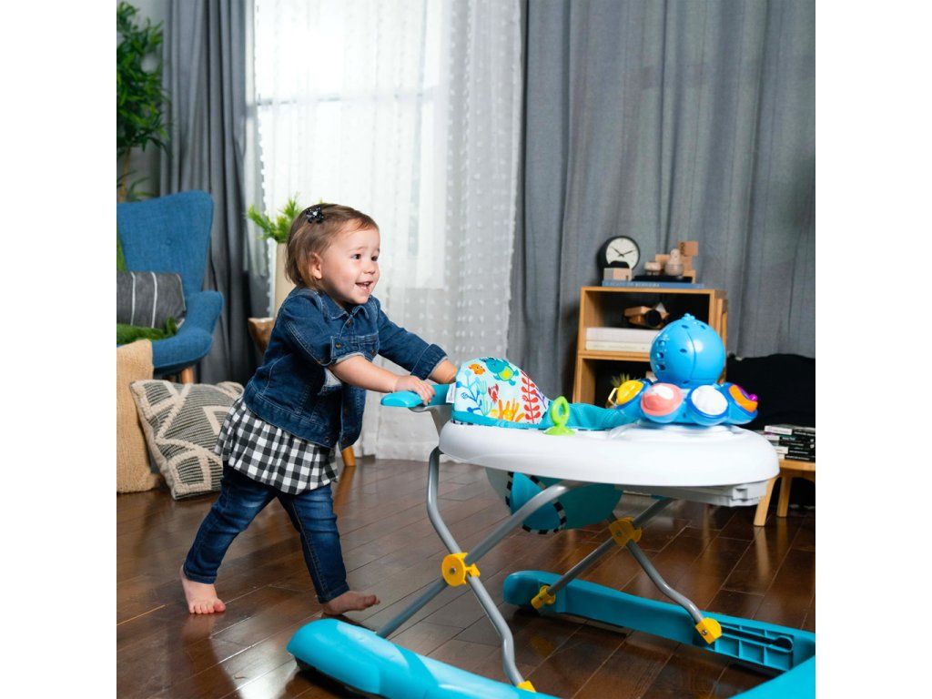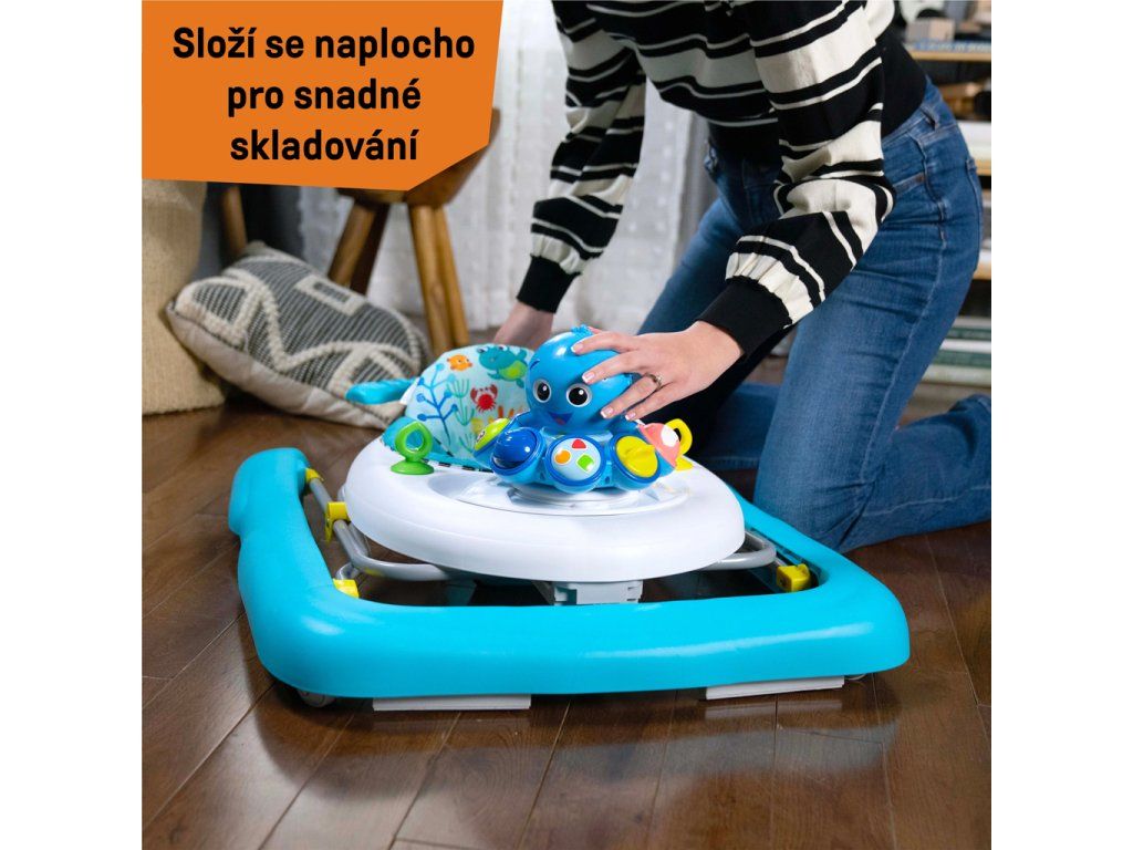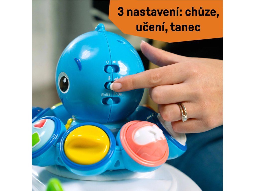 3 režimy objevování pro děťátka ve věku od 6 měsíců do 2 let: V prostředí chůze se každý krok v chodítku nebo za ním otáčí Opus a hraje melodie ze série Ocean Explorers. Ve vzdělávacím prostředí odpojte pro hru na podlaze, aby se děťátko mohlo učit barvy, čísla a tvary ve 4 jazycích – angličtině, španělštině, francouzštině a němčině. Režim tance umožňuje děťátku objevovat hudbu a zvuky oceánu. Chodítko se skládá naplocho a má 3 výškové polohy, aby děťátku perfektně sedělo. Podložka sedadla je pratelná v pračce.