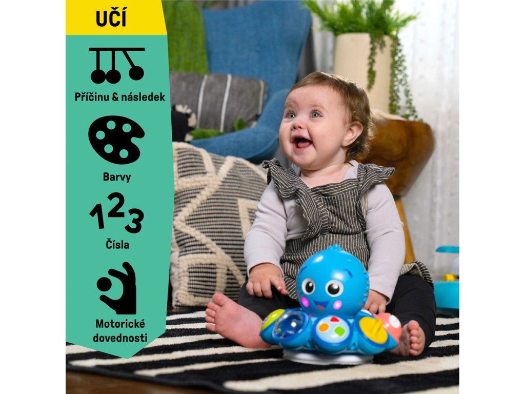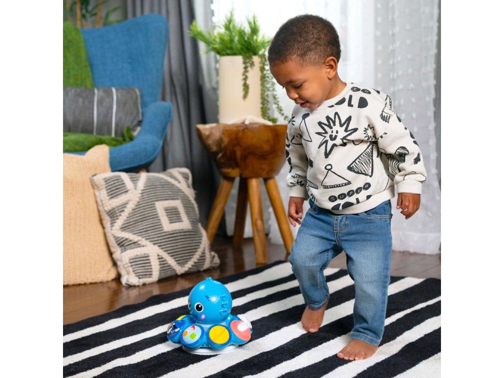 Miminko si zamiluje, když se chobotnice Opus bude otáčet, svítit a hrát hudbu, když bude zkoumat chůzi nebo hru na podlaze.
