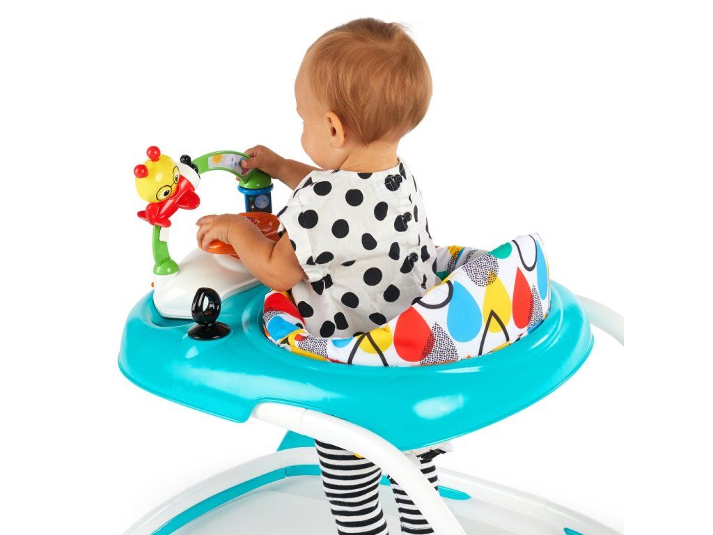 Chůze nikdy nebyla zábavnější. Chodítko Sky Explorers Walker je jako stvořené pro děti a jejich radost z prvních krůčků a pohybu. Chodítko má unikátní eliptický design pro snadnější pohyb. Odnímatelný pultík se světelnými a hudebními efekty, volantem a interaktivními hračkami, lze využít i na hraní mimo chodítko. Vysoká sedací část poskytuje dítěti potřebné pohodlí a oporu při sezení. Možnost nastavení rámu chodítka do tří výškových poloh zajistí správný vývoj vašeho dítěte, protože udržuje chodidla ve vhodné poloze