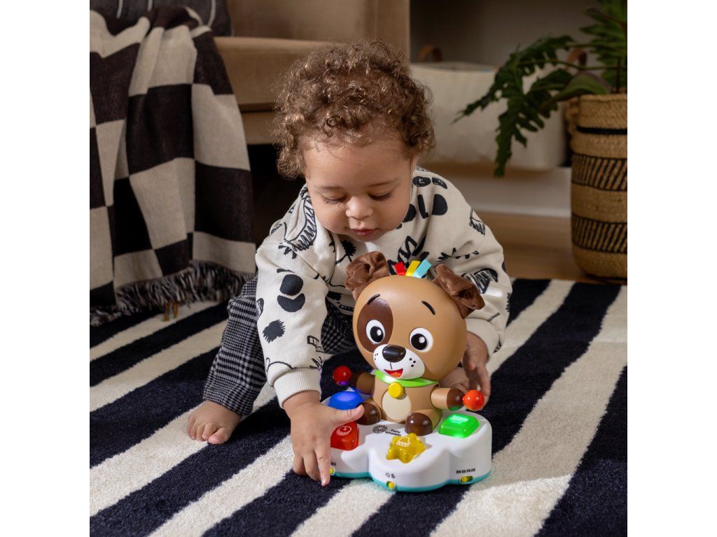 Stiskněte Deanovu hlavu, abyste viděli, jak se jeho ruce pohybují nahoru a dolů a jeho nos se rozsvítí, což inspiruje k objevování příčin a následků a jemné motoriky. Mezi další poutavé, multisenzorické funkce patří 2 zmačkané uši a 3 smyslové stužky pro hmatové objevování.