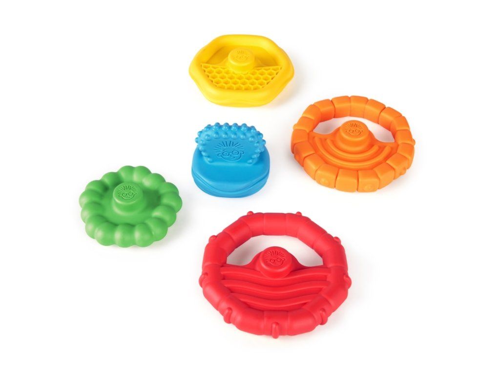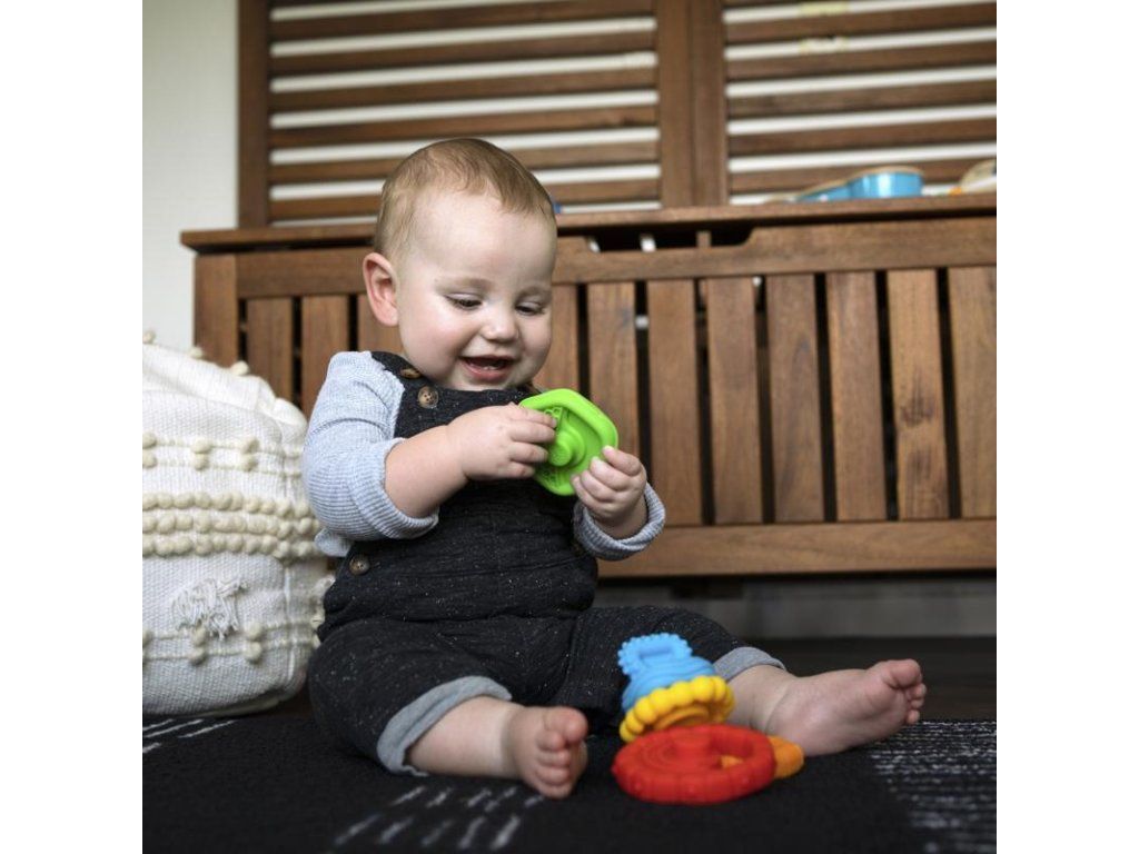 - Skládací kousátka s různou texturou, které jsou bezpečné pro malé zoubky.
