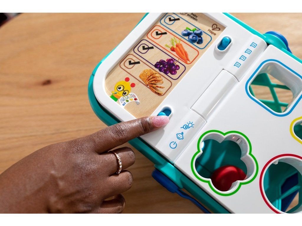 - Pomozte dítěti naučit se skutečné koncepty, jako jsou tvary, barvy a potraviny, s nákupním košíkem od Baby Einstein Magic Touch.