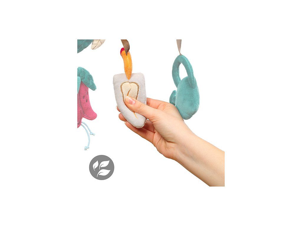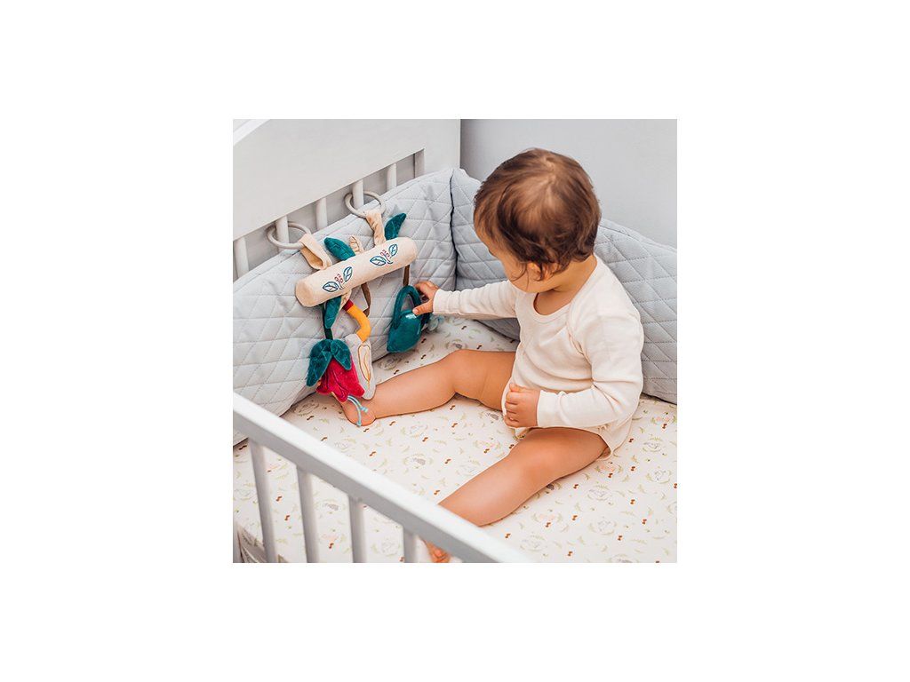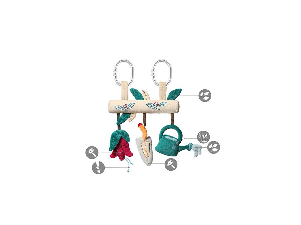 Vzdělávací hračka seznámí vaše dítě s rozmanitým světem barev, zvuků a tvarů. Tvar hračky v podobě hrazdičky umožňuje zavěšení na všechny druhy autosedaček nebo kočárků. Díky tomu může dítě doprovázet během cestování a procházek.