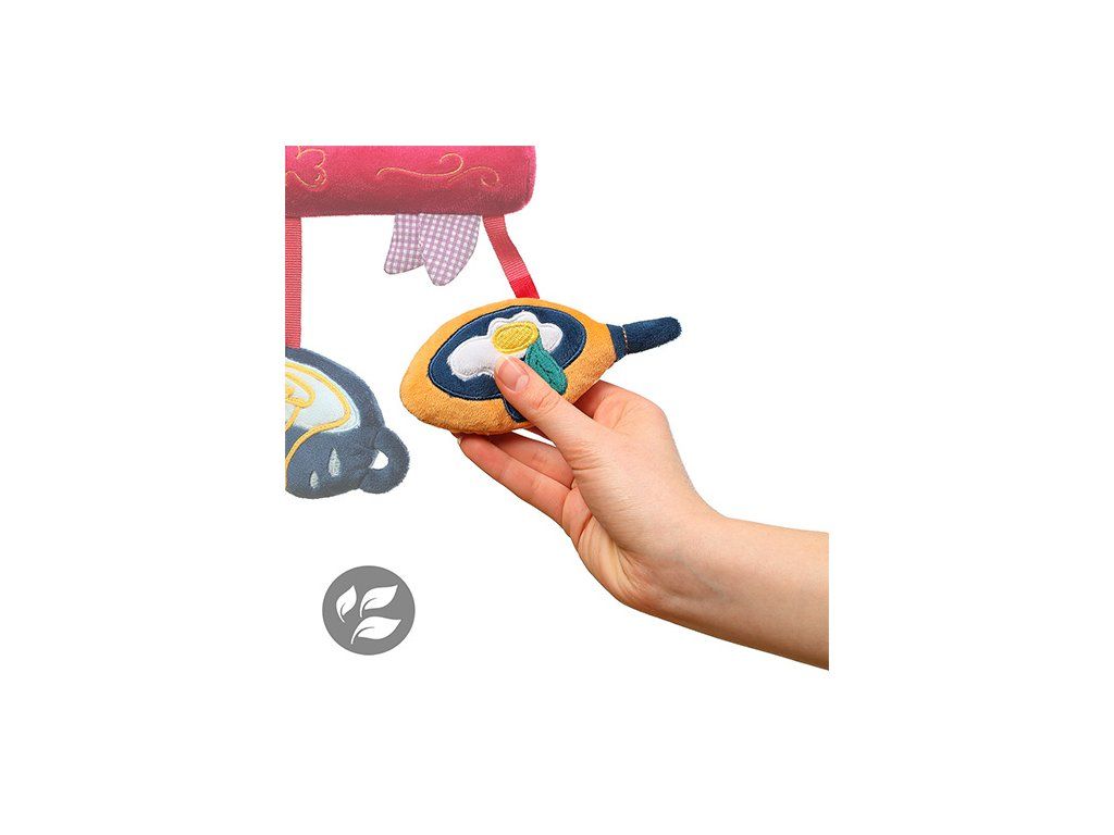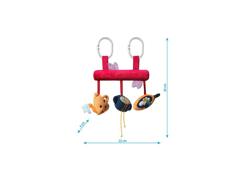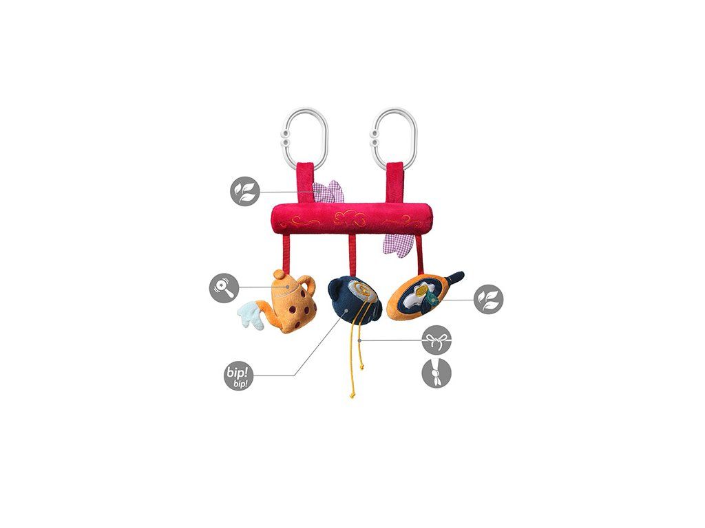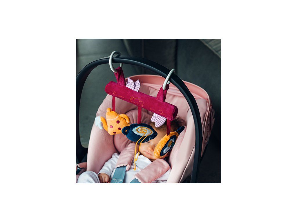 Vzdělávací hračka seznámí vaše dítě s rozmanitým světem barev, zvuků a tvarů. Tvar hračky v podobě hrazdičky umožňuje zavěšení na všechny druhy autosedaček nebo kočárků. Díky tomu může dítě doprovázet během cestování a procházek.