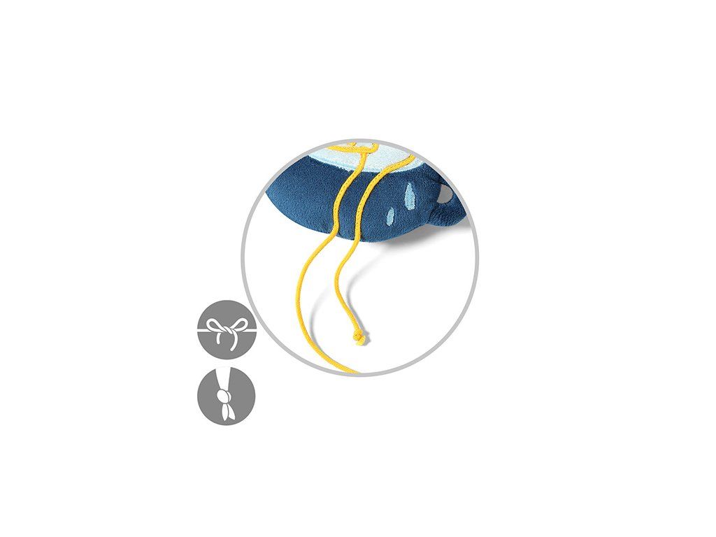 Připevněte hračku mimo dosah dítěte. Aby se předešlo možným zraněním způsobeným zamotáním, odstraňte hračku, když se dítě začne snažit postavit na ruce a kolena v poloze na lezení.