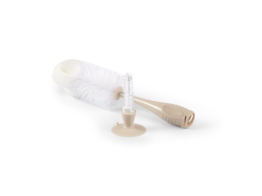BABYONO Kartáč na láhve a dudlíky s přísavkou Beige