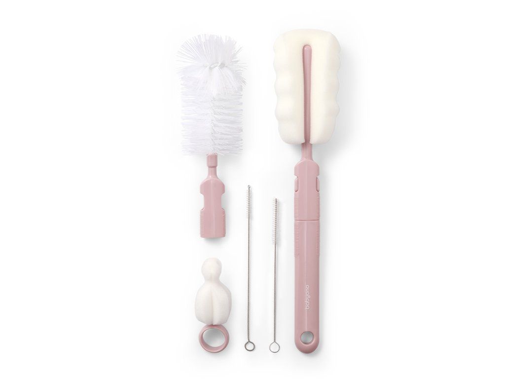 BABYONO Kartáče na kojenecké láhve a dudlíky s odnímatelnou rukojetí Pink