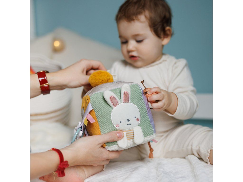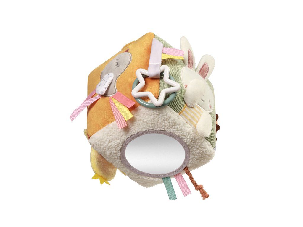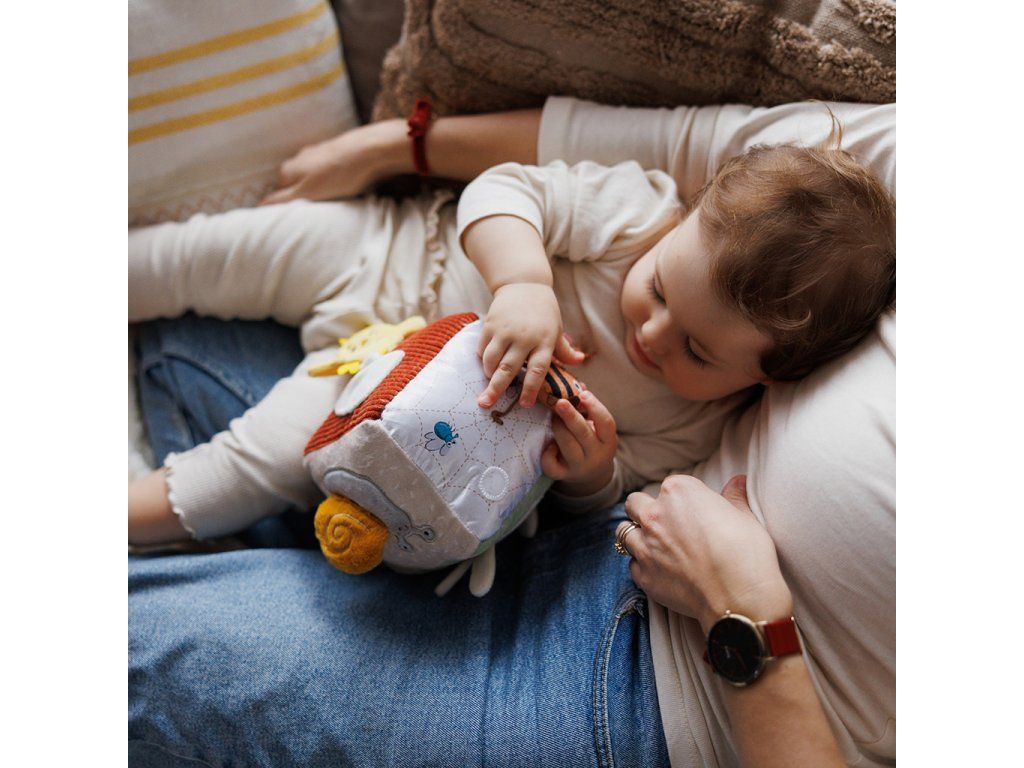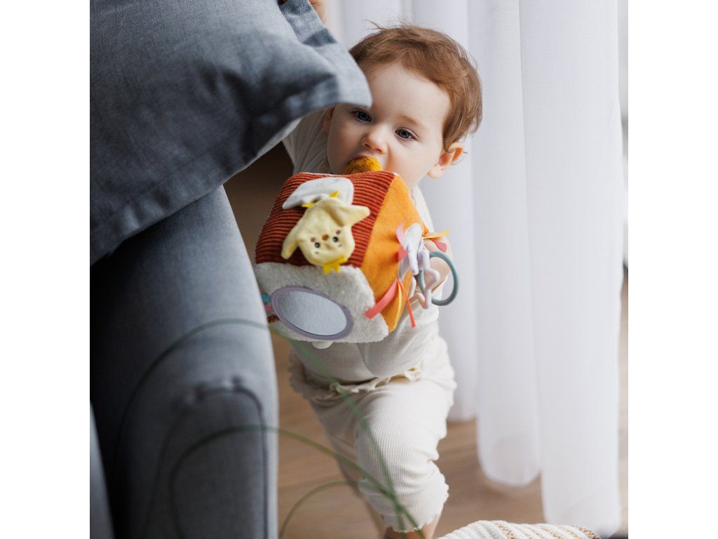 Senzorická kostka Nature na dlouhou dobu upoutá pozornost vašeho dítěte. Obsahuje mnoho skrytých prvků – zaujme ho a stimuluje soustředění. Učí logické myšlení a pomáhá rozvíjet smysly od prvních dnů života. Prvky produkující zvuky rozvíjejí sluch. Různé textury, vyčnívající a odnímatelné části stimulují hmat. Součástí je také zrcadlo.