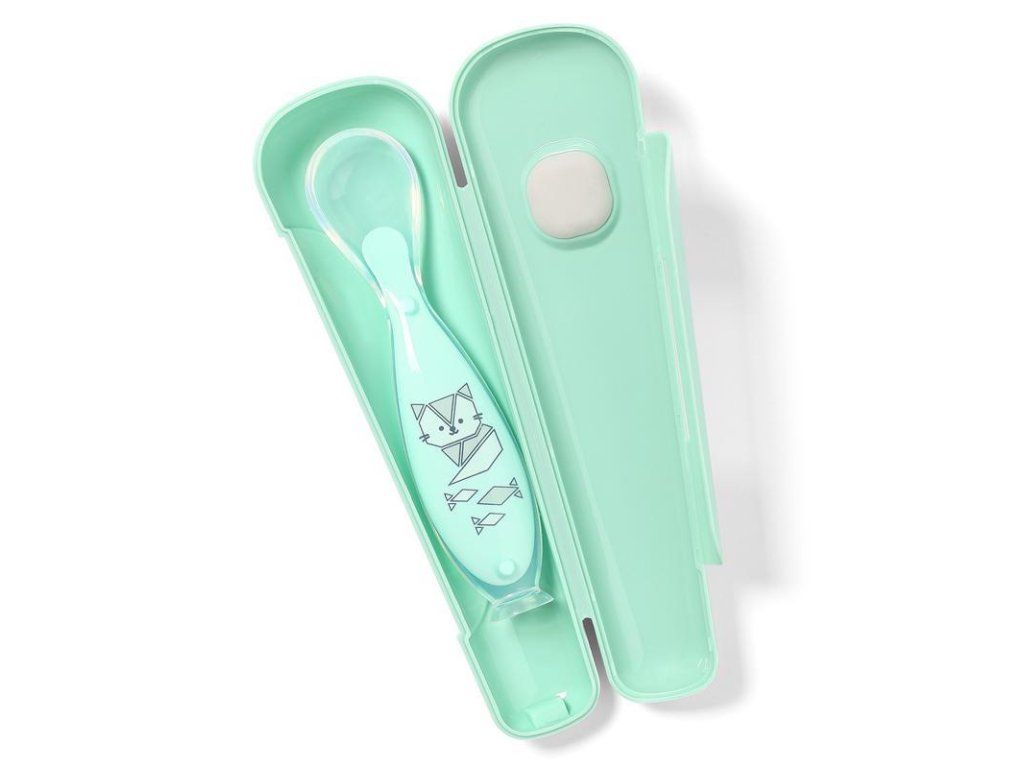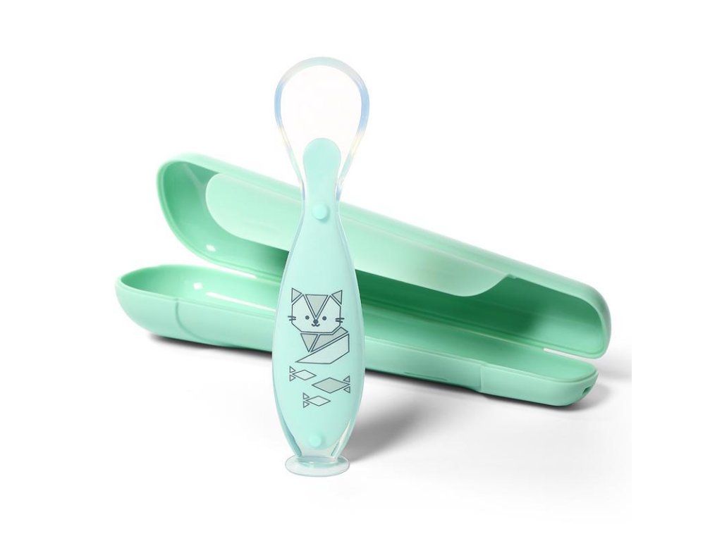 Silikonová lžička s přísavkou a obalem je vynikajícím pomocníkem v domácnosti, na procházce nebo na cestách.