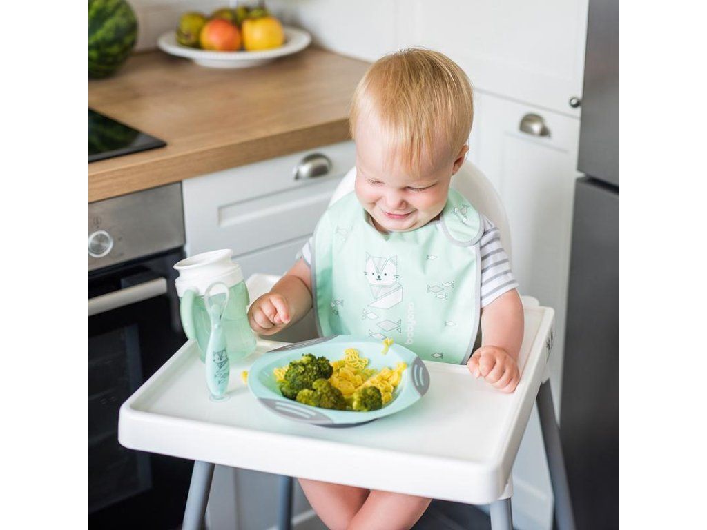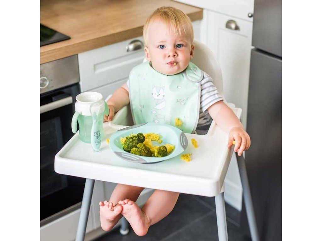 Lžička je správně profilovaná a také ideální pro trénování samostatného jedení. Je vyrobena ze silikonu nejvyšší kvality určeného pro styk s potravinami.