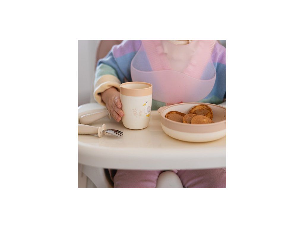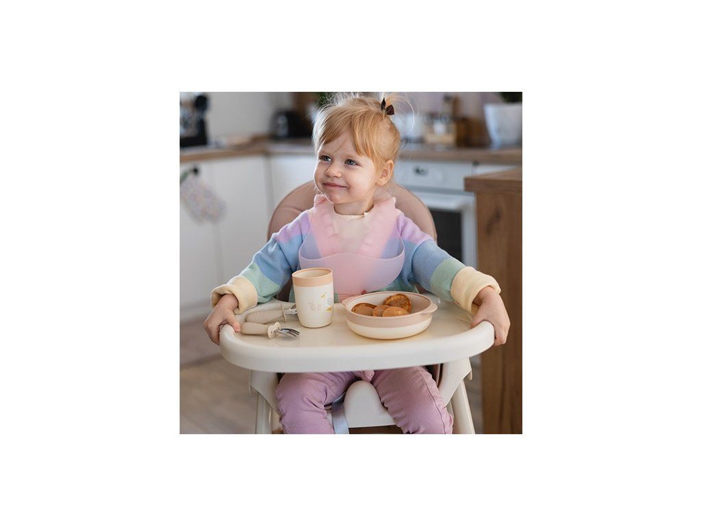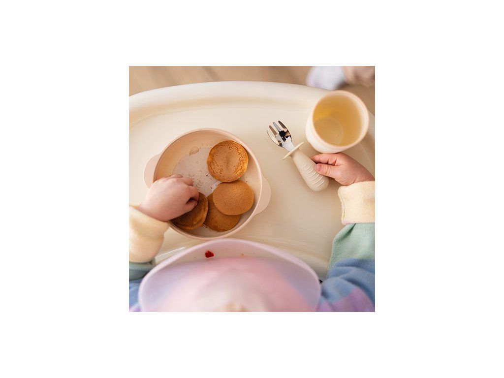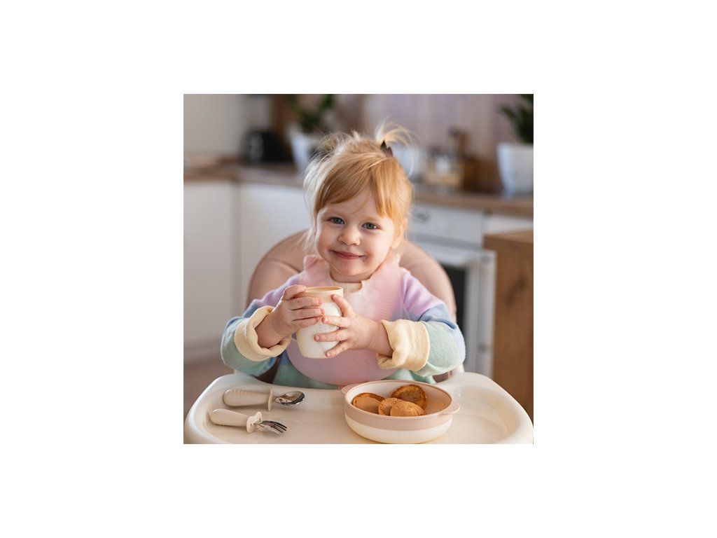 Jídelní souprava pro děti – talíř, miska a hrníček pro samostatné jedení. Naše dětská jídelní souprava obsahuje vše, co potřebujete, aby vaše dítě mohlo začít s prvními pokusy o samostatné jedení. Souprava obsahuje talíř, misku a hrníček, ideální pro podávání teplých i studených pokrmů, a také pro učení se pít z otevřeného hrníčku. Odborníci tvrdí, že tento způsob pití přispívá i k rozvoji řeči a zlepšuje koordinaci rukou a očí, posiluje svaly tváře a úst a omezuje kontakt nápojů se zuby, čímž pomáhá předcházet zubnímu kazu. Souprava roste spolu s vaším dítětem – je praktická, bezpečná a podporuje rozvoj zdravých návyků. Jsou snadno uchopitelné i pro malé dětské ručičky.