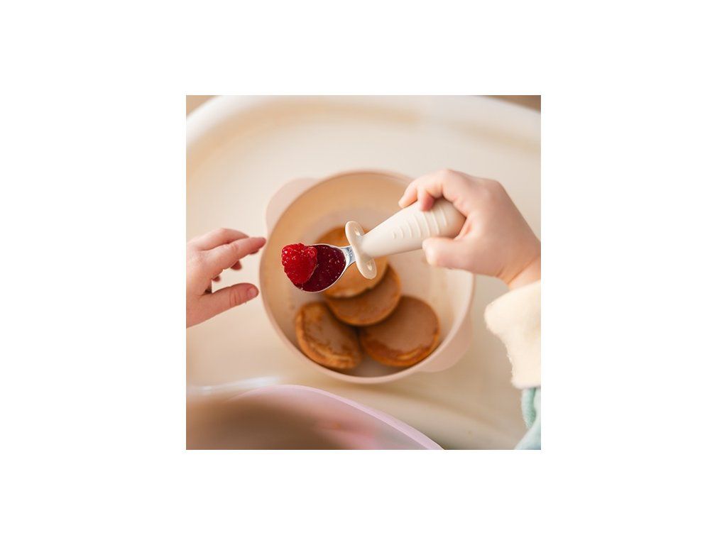 - zaoblené hrany jsou přizpůsobeny pro pohodlné držení a zároveň šetrné k citlivým dětským rtům a dásním