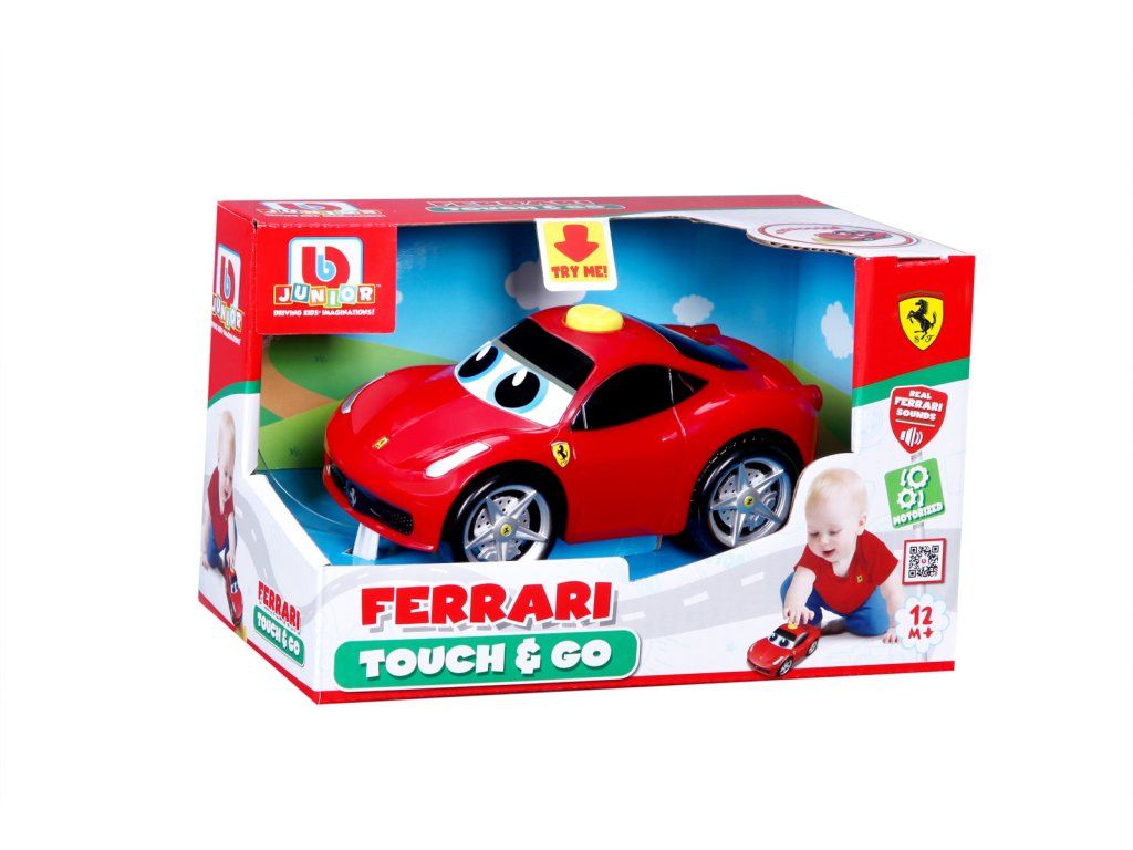 Autíčko Ferrari 458 Italia se zvuky BBJunior z řady Stiskni a jeď. Po stisknutí tlačítka se jasně červené Ferrari rozjede a svým realistickým zvukem motoru rozzáří dětské oči. Toto sportovní auto pomáhá trénovat motorické schopnosti a stimulovat sluchové smysly dětí. Autíčko je vhodné pro děti od 12 měsíců. Napájení autíčka je na dvě baterie AAA, které jsou součástí balení. Velikost autíčka je 5,2 palce (13,2 cm). Rozměr balení: 17,78 x 17,15 x 10,8 cm.