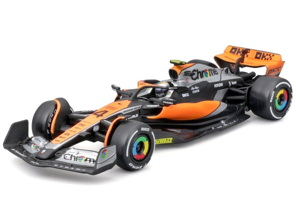 Bburago 1:43 Závod Formule 1 - McLaren F1 Team MCL60 (2023) #4 (Lando Norris) - s jezdcem a dekorační krabičkou