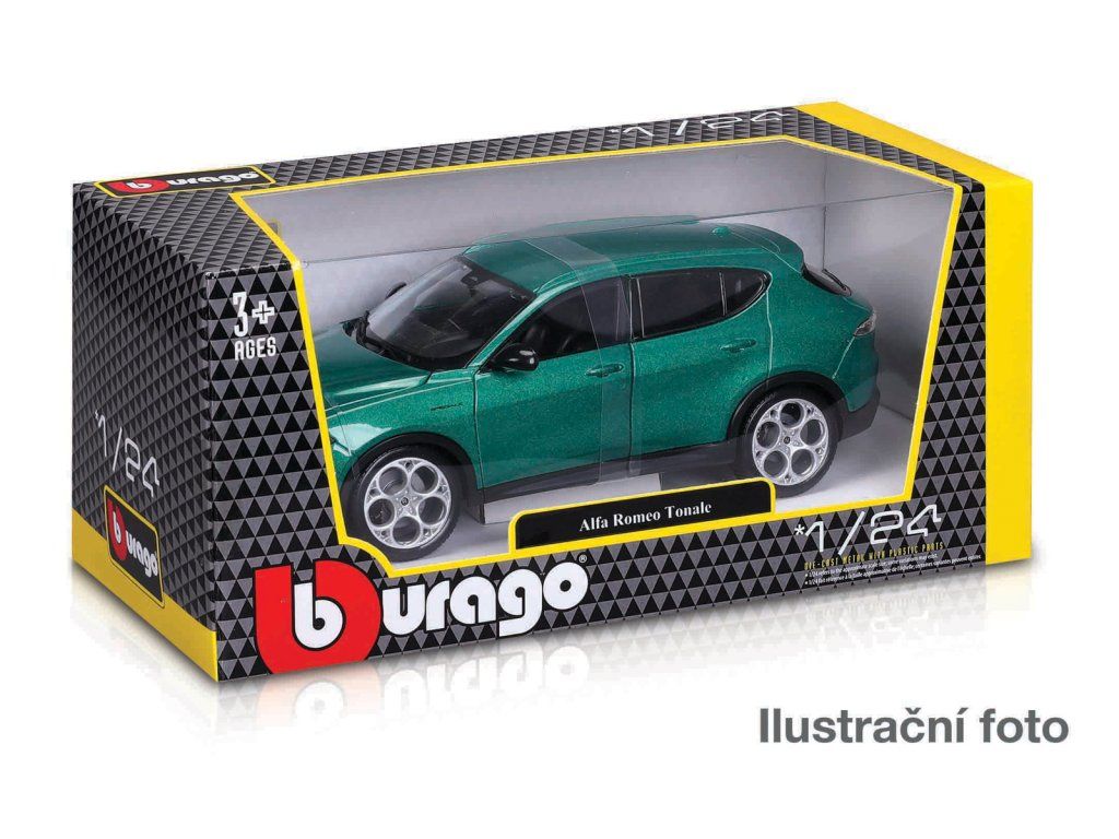 Modely automobilů Bburago Hobby v měřítku 1:24 jsou sbírkou krásného designu s vysokým důrazem na přesnost detailů. Modely jsou vyrobeny z litého kovu s plastovými detaily. Většina modelů z kolekce má otevírací dveře, kufr nebo kapotu. Některé z modelů mají pohyblivý volant. Sortiment je náhodná směs modelů. Výběr nelze ovlivnit. Modely v sortimentu: Alfa Romeo Stelvio – modrá metalíza, Alfa Romeo Tonale – zelená metalíza, Audi RS 5 Coupé – červená, Dodge Viper SRT 10 ACR – červeno-černá, Jaguar XK 120 Roadster (1951) – tmavě zelená, Lamborghini Revuelto – oranžová, Lamborghini Sián FKP 37 – červená metalíza, Lamborghini Terzo Millennio – světle zelená, 2022 Land Rover Defender 110 – zelená metalíza, Range Rover – stříbrná, Porsche 911 GT3 – mátově zelená, Renault Mégane Trophy – žlutá metalíza. Baleno v krabičce. Nevhodné pro děti do 3 let. Rozměry balení: 10,7 x 23 x 11,4 cm. Věk 3+