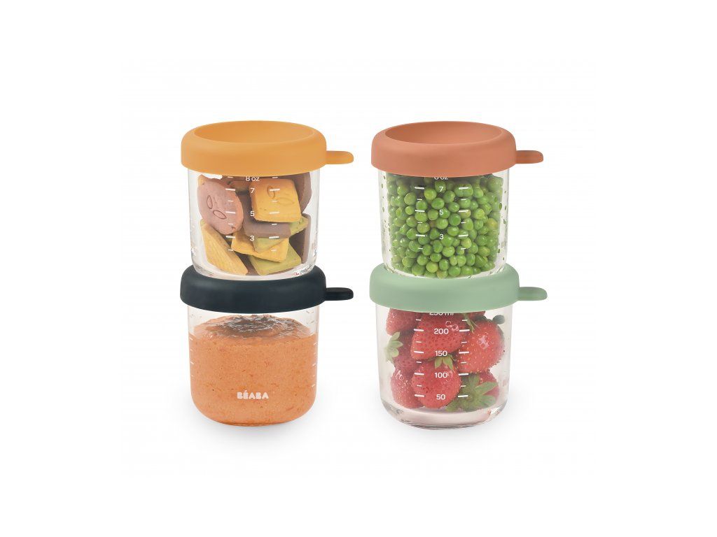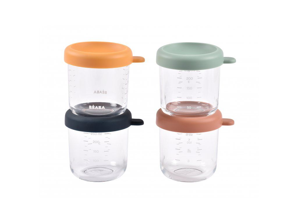 Beaba Kelímky na jídlo skleněné 4x 250 ml Sunrise