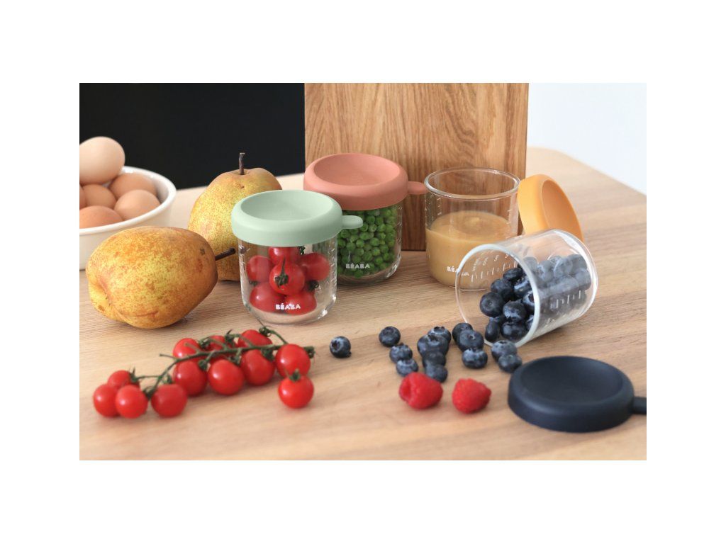 Skleněný kelímek na dětskou stravu s hermeticky uzavíratelným víčkem je praktickým, hygienickým a zdravým řešením pro dětské příkrmy. Na rozdíl od plastových nebo silikonových nádobek jsou skleněné nádobky vhodné pro intenzivní použití, během kterého se neopotřebovávají, nebarví ani nedeformují.
