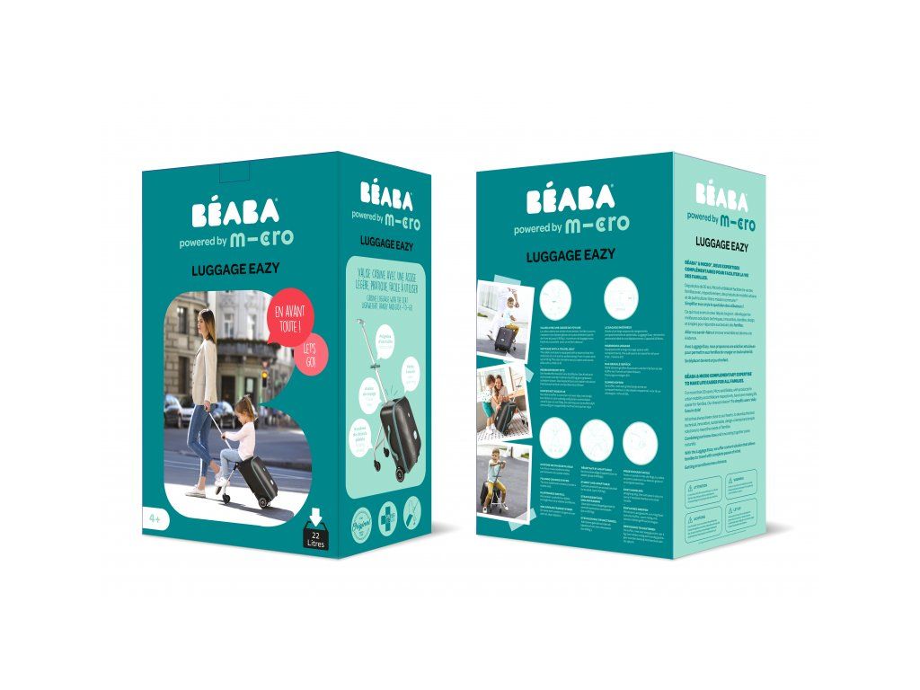 Unikátní příruční zavazadlo usnadní a zrychlí vaše cestování s malým dítětem na letišti, na nádraží a podobně. Kufr je vybaven sedadlem, na kterém můžete vozit sedící dítě. Maximální stabilitu při jízdě se sedícím dítětem poskytují vyklápěcí opěrné nohy s kolečky. Vytahovací rukojeť a přední kolečka otočná o 360 ° nabízejí pohodlné ovládání kufru.