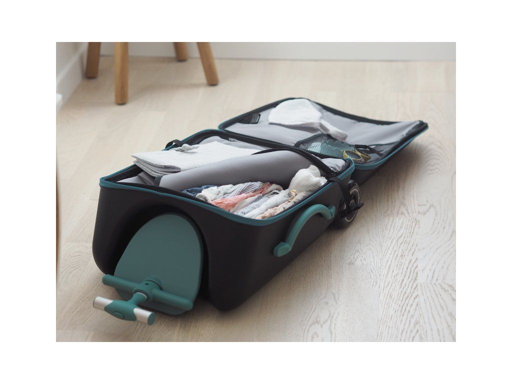 Šikovný způsob otevírání kufru umožňuje snadný a bezpečný přístup k obsahu kufru i se sedícím dítětem. Oddělený velký úložný prostor a praktické vnitřní kapsy poskytují prostor pro přehledné uložení všeho potřebného na vašich cestách.
