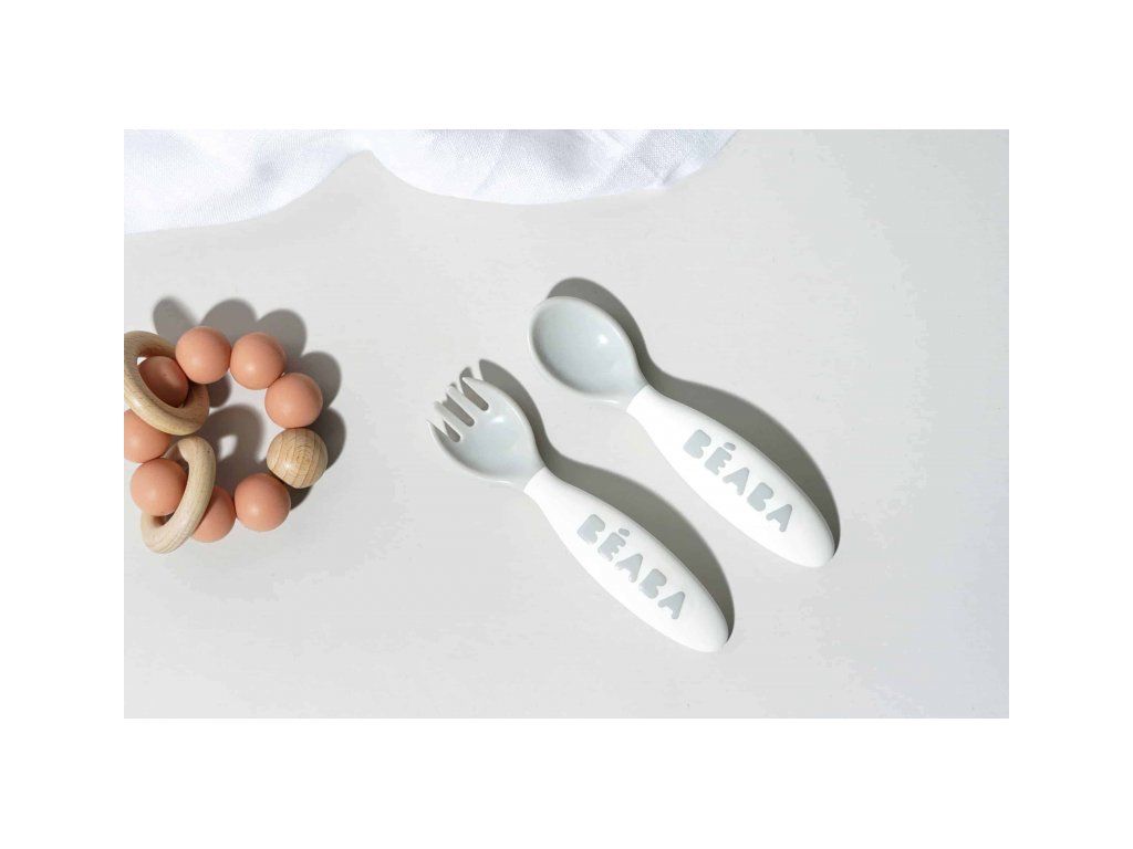 Plastová lžička a vidlička pro první samostatné krmení mají ideální tvar pro dětská ústa. Tvar držadla usnadňuje dítěti držení lžičky i vidličky a je vhodný pro praváky i leváky. Praktické pouzdro umožňuje hygienické přenášení lžičky a vidličky například v přebalovací tašce.