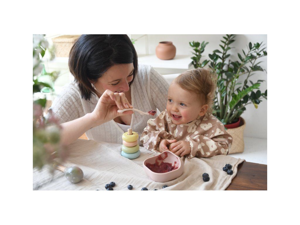 Miska s přísavkou z vysoce kvalitního silikonu umožňuje připevnění ke stolu nebo pultu jídelní židličky. Ergonomický tvar usnadňuje nabírání příkrmu.