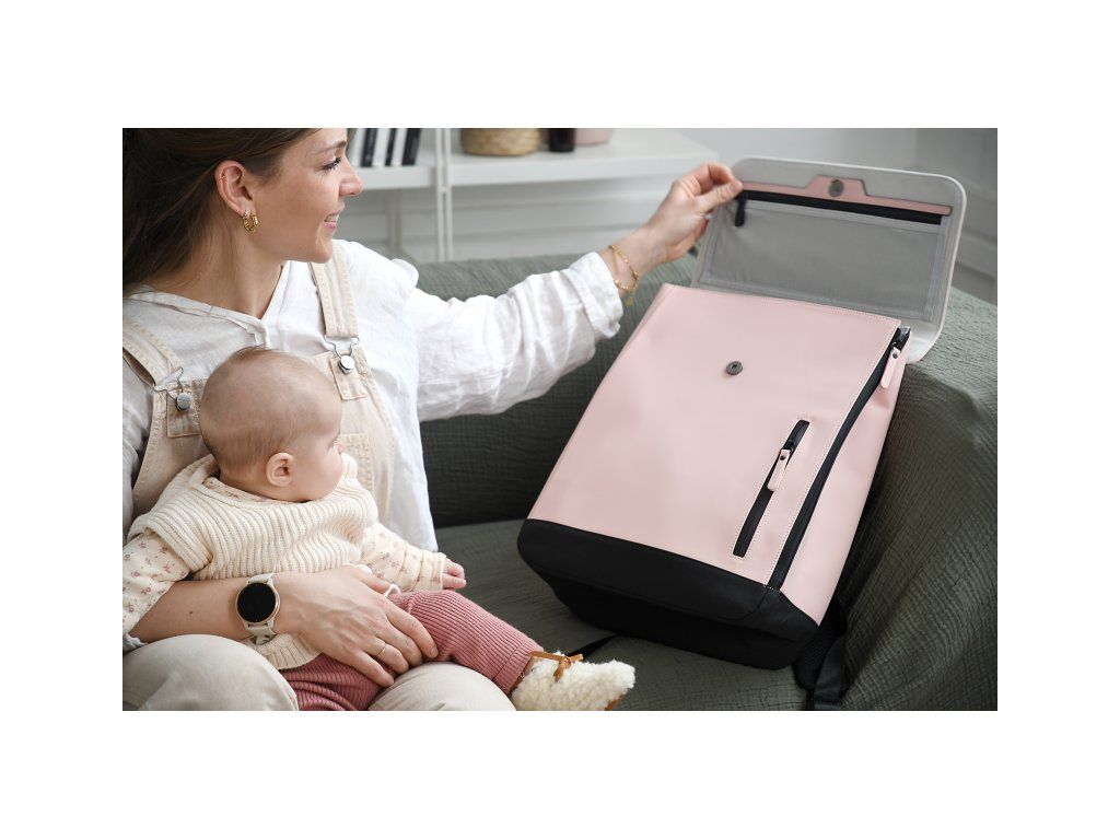 Stylový unisex batoh v minimalistickém designu skvěle doplní váš outfit a zároveň nabídne vše, co očekáváte od přebalovací tašky. Je vybaven jedenácti kapsami, včetně tří kapes na zip pro bezpečné uložení vašich cenných drobností. Součástí batohu je přebalovací podložka a vnitřní termoizolační kapsa na nápoj. Kromě horního vstupu s magnetickým uzávěrem batoh nabízí možnost přístupu z boku díky zipu po celé boční straně.