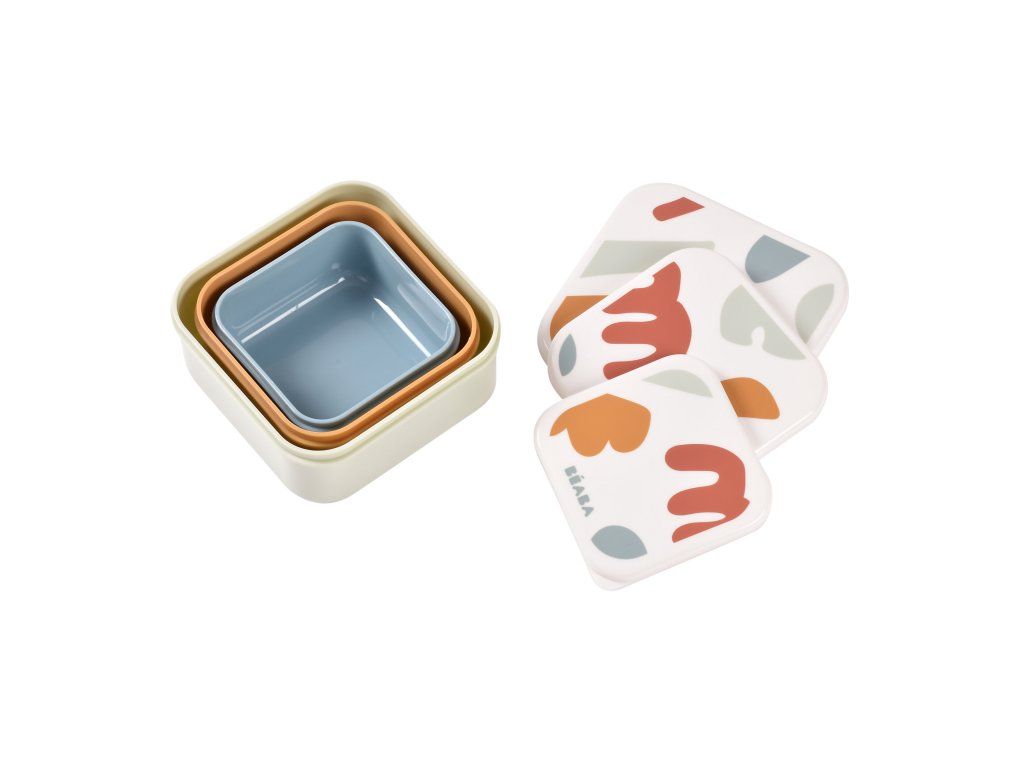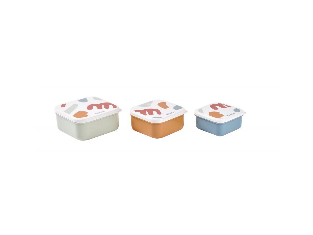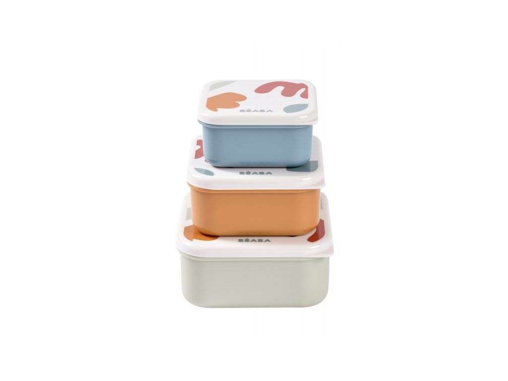 Sada tří svačinových boxů ve třech velikostech je ideální na svačiny do školy i na výlety a procházky. Víčko chrání obsah boxu při přenášení, jeho ergonomické provedení umožňuje snadné otevírání i malými dětskými ručičkami.