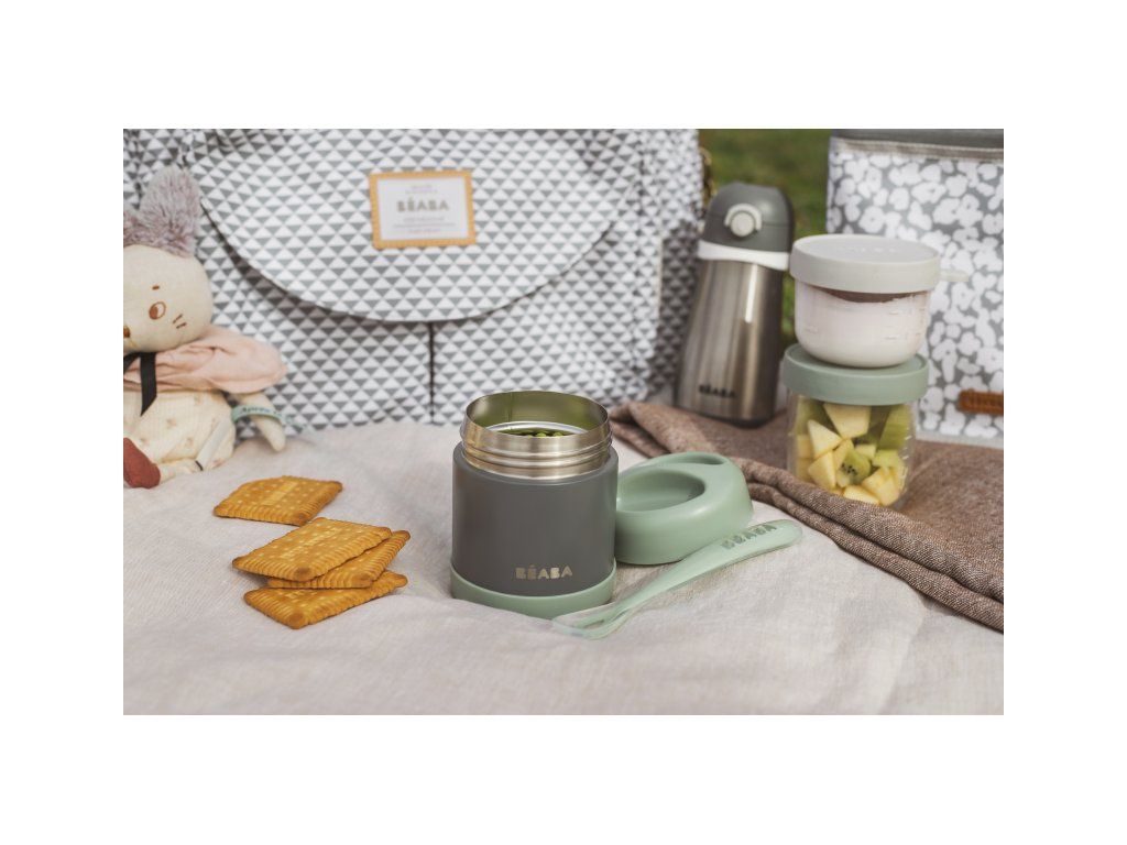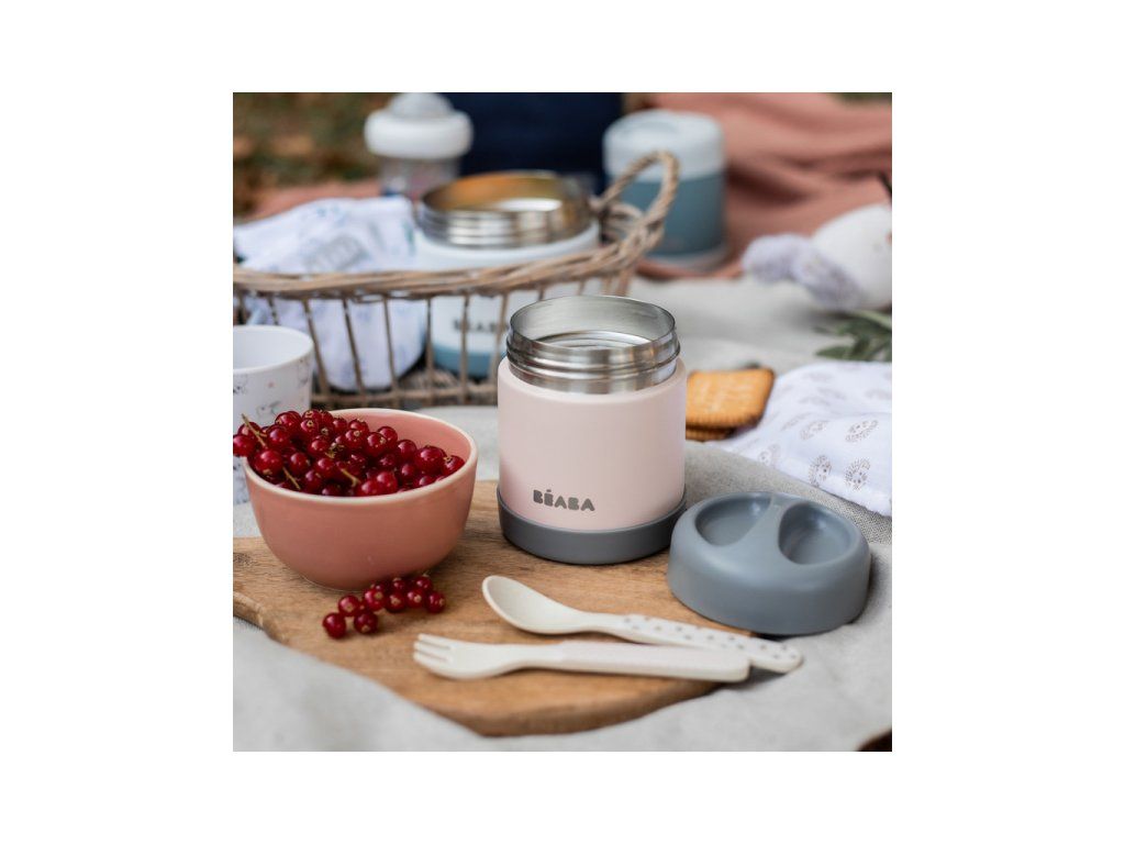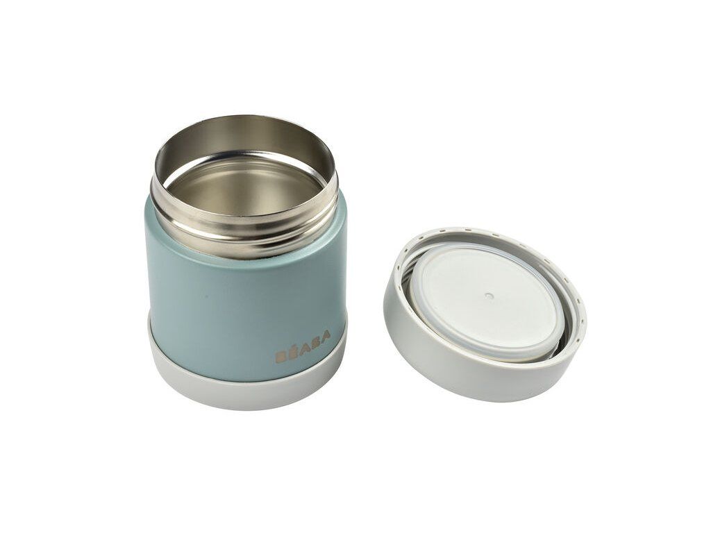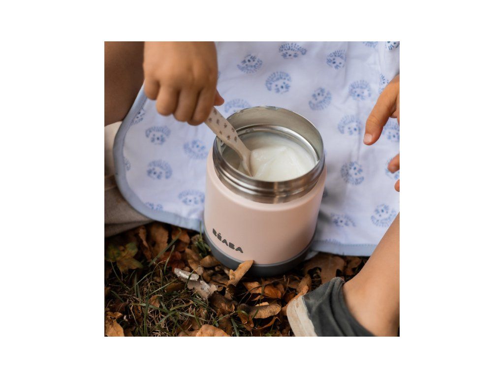 Vakuová termoska Beaba vyrobená z vysoce kvalitní dvouplášťové oceli je ideální pomůckou pro zdravé stravování na cestách s vaším dítětem. Termoska udrží až 6 hodin jídlo teplé a až 7 hodin studené. Hermetické uzávěry zaručují bezpečné přenášení v tašce. Široké hrdlo usnadňuje plnění i nabírání jídla z termosky.