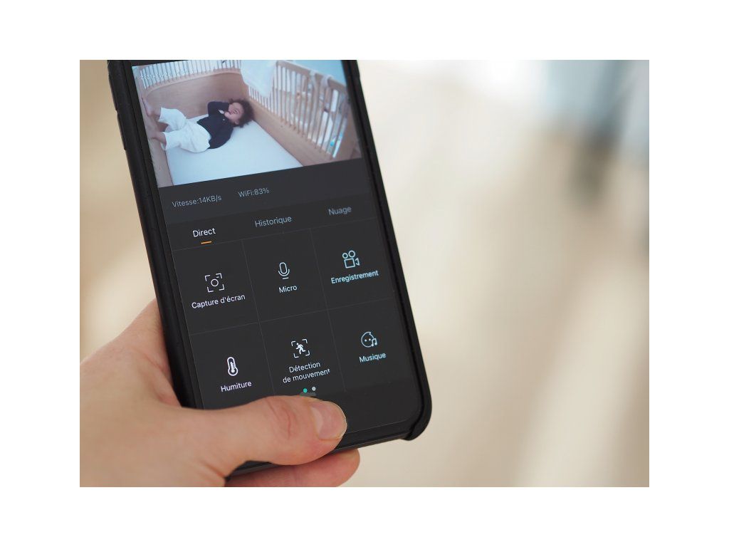 Video chůvička Beaba ZEN Premium vám nabízí dvě možnosti použití - s dodávanou rodičovskou jednotkou s barevným displejem nebo s pomocí aplikace na vašem chytrém telefonu. Díky wifi připojení můžete své dítě sledovat odkudkoli potřebujete.
