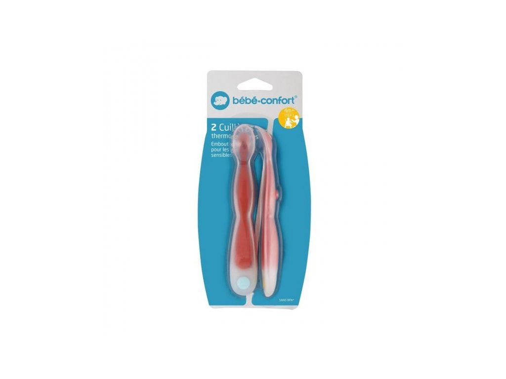 Lžičky s tepelným senzorem Bebeconfort změní barvu, pokud je teplota příkrmu příliš vysoká. Ideální pro pokrmy ohřívané v mikrovlnné troubě, u kterých hrozí riziko nerovnoměrného ohřátí. Měkké zakončení je šetrné k citlivým dásním dítěte, dlouhá rukojeť usnadňuje nabírání z poháru.