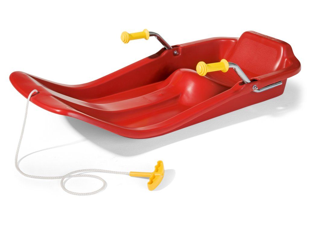 Extra stabilní červené boby vyrobené z kvalitního plastu, vynikají kovovými brzdami. Boby mají v přední části šňůru. Hmotnost bobů 2 kg, rozměry: 93 x 41 x 22 cm. Věk: 3+