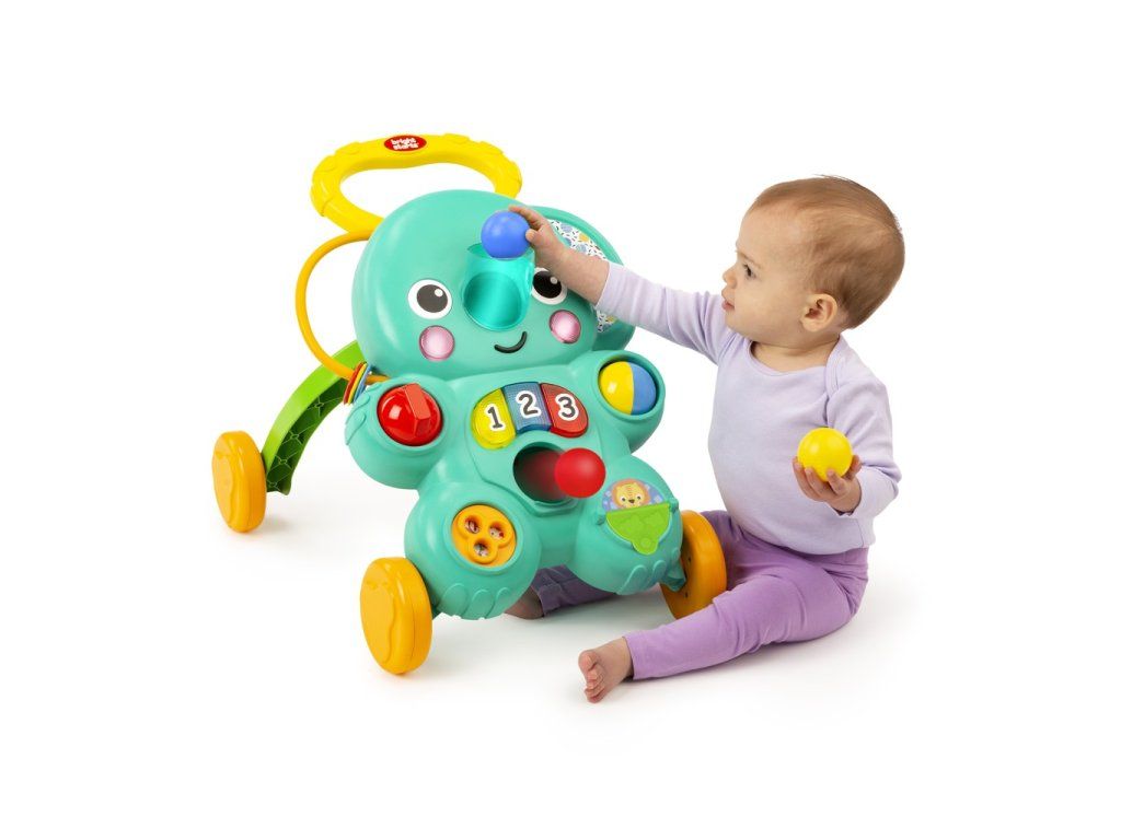 - design Stroll 'n Roll 2 v 1 od Bright Starts kombinuje hravost hračky na sezení a hraní s dobrodružstvím chodítka na tlačení
