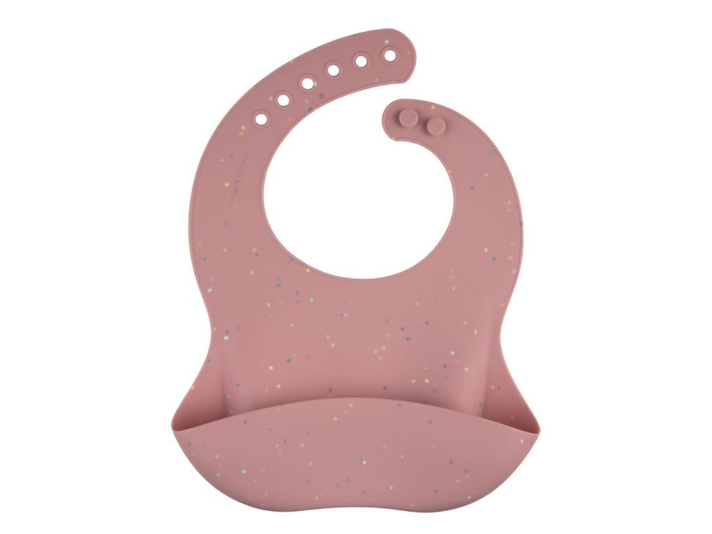 Canpol babies Silikonový bryndáček s kapsou DOTS růžový