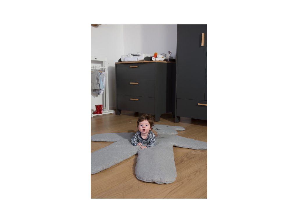 Měkká hrací deka v podobě obrovského medvěda zpříjemní hraní dítěte na zemi a zároveň slouží jako krásná dekorace dětského pokoje.