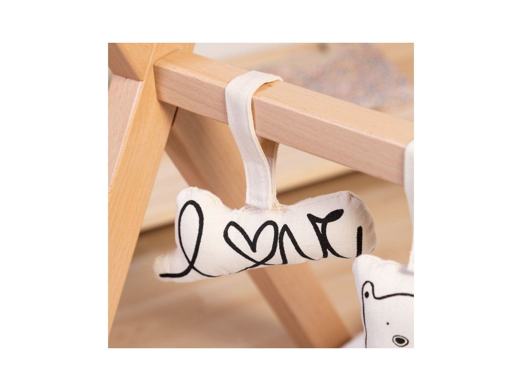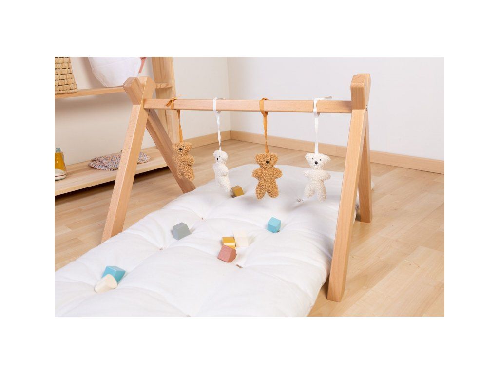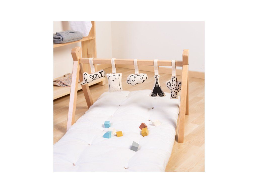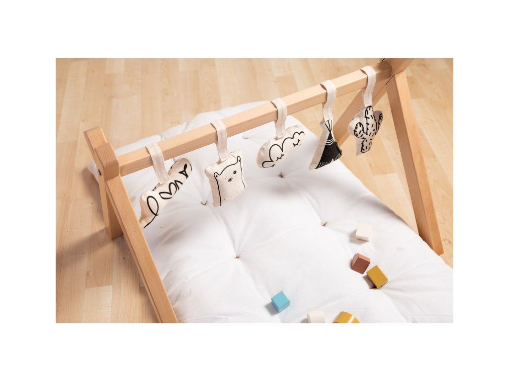 Stabilní hrazda pro zavěšení hraček je vyrobena z bukového dřeva. Umožní vám umístit nad dítě Sadu závěsných hraček Childhome nebo jakékoli jiné závěsné hračky.