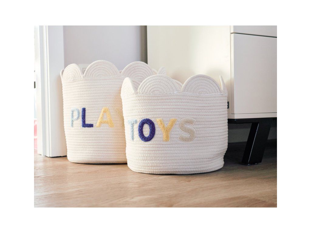 Krásný úložný košík je vhodný pro ukládání drobných hraček, oblečení a podobně. Košík z příjemného textilního materiálu se stane něžnou dekorací v dětském pokoji.