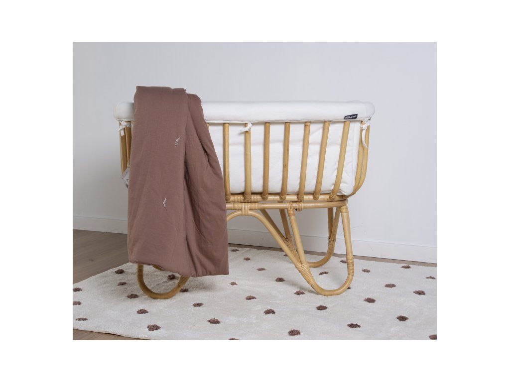 Košík pro miminko v krásném přírodním designu je vyroben z ratanu. Jeho součástí je měkká matrace a textilní potah z měkké bavlny, který dotváří útulné a pohodlné prostředí pro miminko. Díky nízké hmotnosti se košík snadno přenáší, abyste mohli mít miminko stále na dohled.