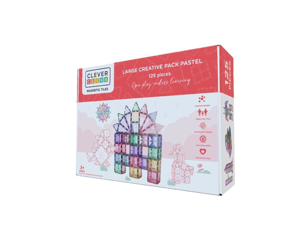 Cleverclixx magnetická stavebnice - Velké kreativní balení Pastel 125ks