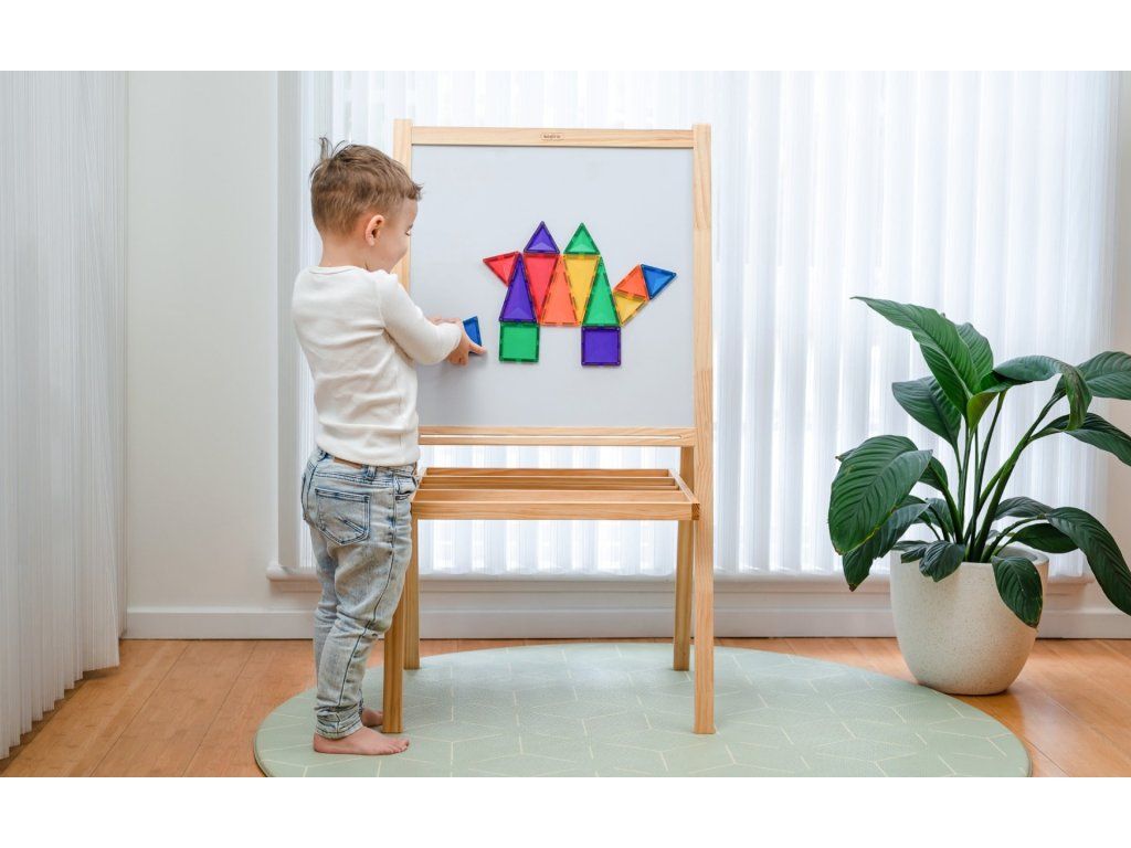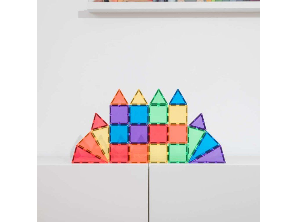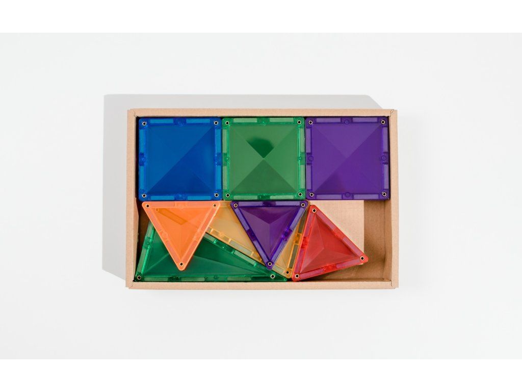Rainbow Mini Pack obsahuje 12 čtverců, 6 rovnoramenných trojúhelníků a 6 rovnostranných trojúhelníků. Tato rozmanitost tvarů umožňuje vytvářet různé 2D a 3D objekty, jako jsou rakety, zmrzliny, domečky, květiny, dinosauři, zvířata, panorámy měst, lodě a mandaly.