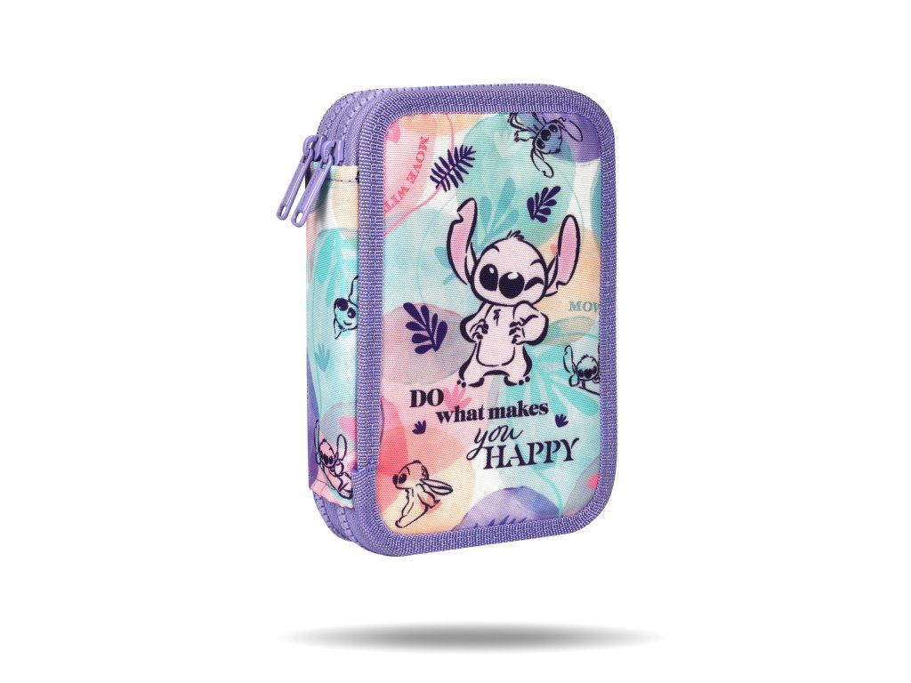 Penál Jumper dvoupodlažní Stitch Pastel Vše potřebné na psaní a tvoření v jednom praktickém penálu Penál Jumper Stitch Pastel je dvoupodlažní organizér pro děti, který obsahuje vše potřebné na psaní a kreslení. S jemným motivem Stitcha a odolným zipem s kontrastním lemováním je ideální pro školáky. Gumičky na psací potřeby zajišťují pevnost a pořádek, zatímco vybavení jako fixy, pastelky a tužky zajistí vše, co děti potřebují pro tvořivé činnosti.Obsah:18× fixů12× pastelek1× trojhranná tužka HB 1× gelové pero 0,7 mm1× pravítko 15 cm1× guma1× ořezávátko