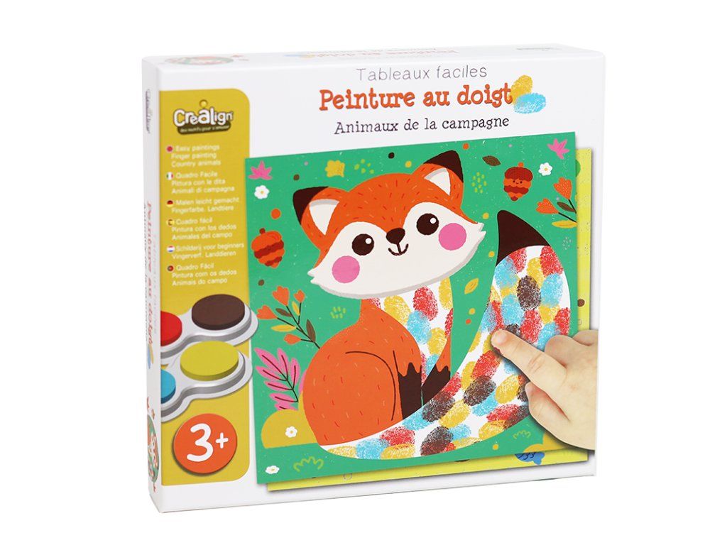 Malování prstovými barvami Lesní zvířátka Vybarvi lesní zvířátka svými otisky prstů! Kreativní sada pro děti Malování prstovými barvami Lesní zvířátka od francouzské značky Crea Lign z řady Jednoduché obrázky je vhodná již pro děti od 3 let. Obsahuje 6 obrázků zvířátek k vybarvení a paletu se 4 barevnými poduškami na otisky prstů. Díky nim si děti roztomilá lesní zvířátka krásně vybarví jen za pomoci svých otisků prstů. Nechybí ani 1 stojan pro následné vystavení obrázků a 1 houbička na utírání prstů.Skvělé pro rozvoj kreativity Malování prstovými barvami podporuje rozvoj jemné motoriky, představivosti i kreativity. Produkt je vysoce kvalitní a bezpečný, stejně jako všechny ostatní výrobky francouzské značky Crea Lign. Jejím cílem je vyvíjet kreativní potřeby a hry, které podporují rozvoj dětí a umožňují každému z nich najít to, co ho baví.