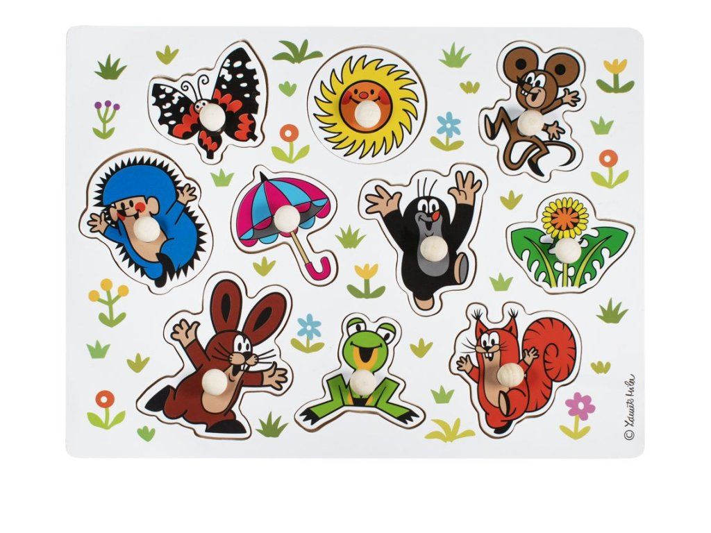 Didaktické vkládací puzzle Krtečka a jeho přátel. Hra učí děti poznávat tvary a pomáhá rozvíjet motoriku rukou. Výrobek splňuje požadavky EU na bezpečnost hraček a je vhodný pro děti od 18 měsíců.